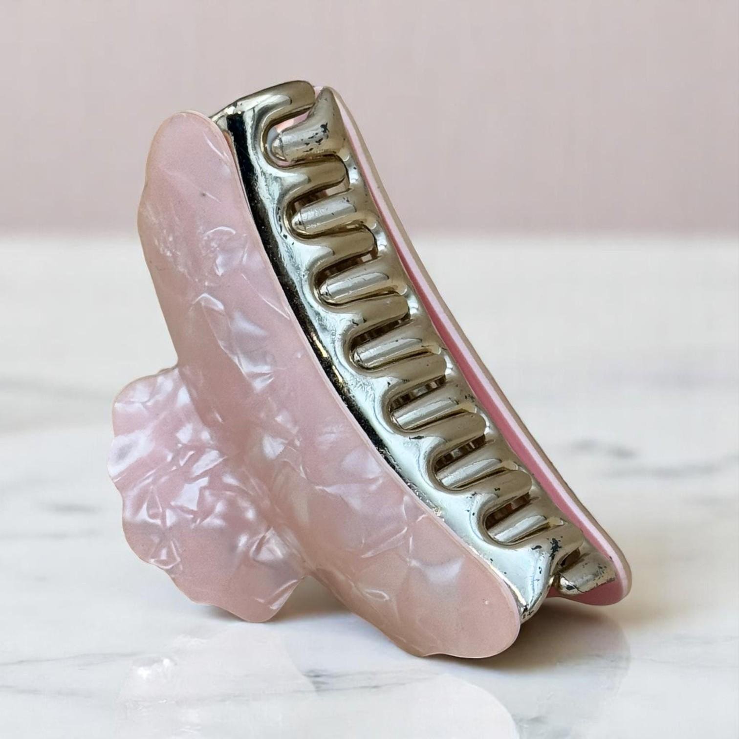 The shiny marble seashell hair clip is not only practical, it is a piece of art that adds charm to your look. With an elegant design with sculpted edges and a scalloped finish that beautifully reflects light, it gives you a comfortable hold and natural elegance. The strong golden grip holds hair firmly without pulling or tugging