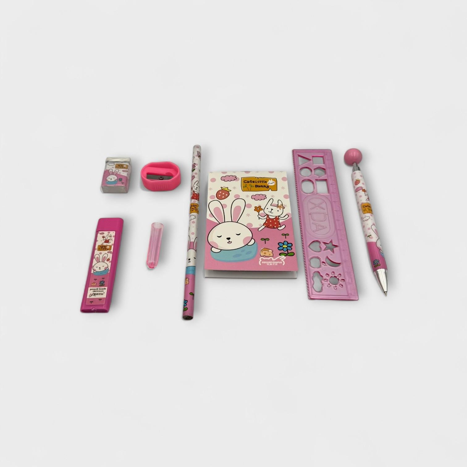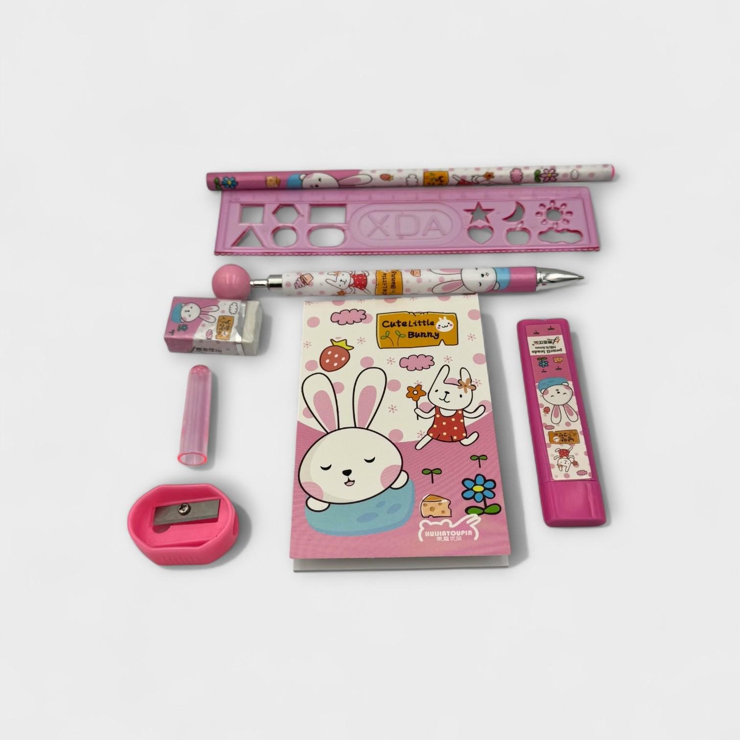 Inside, your child will find essential tools like pencils, an eraser, ruler, sharpener, and a notebook — all featuring a sweet bunny theme. It's not just adorable, but also practical, making it a wonderful gift for school season, birthdays, or even as a reward for good habits