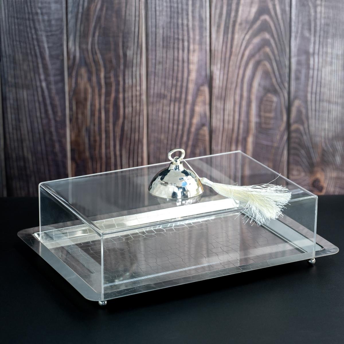 | الوصف | غطاء فضي على شكل قبة بمقبض حلقي. |