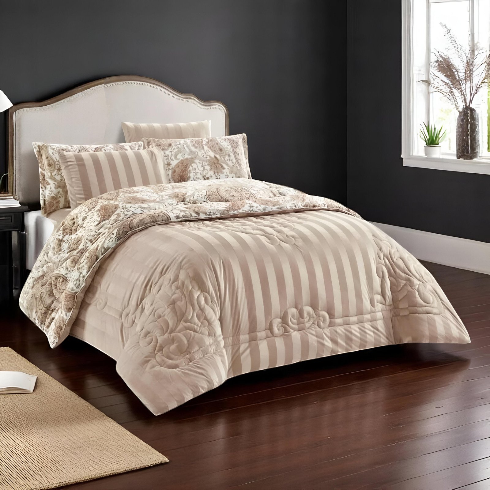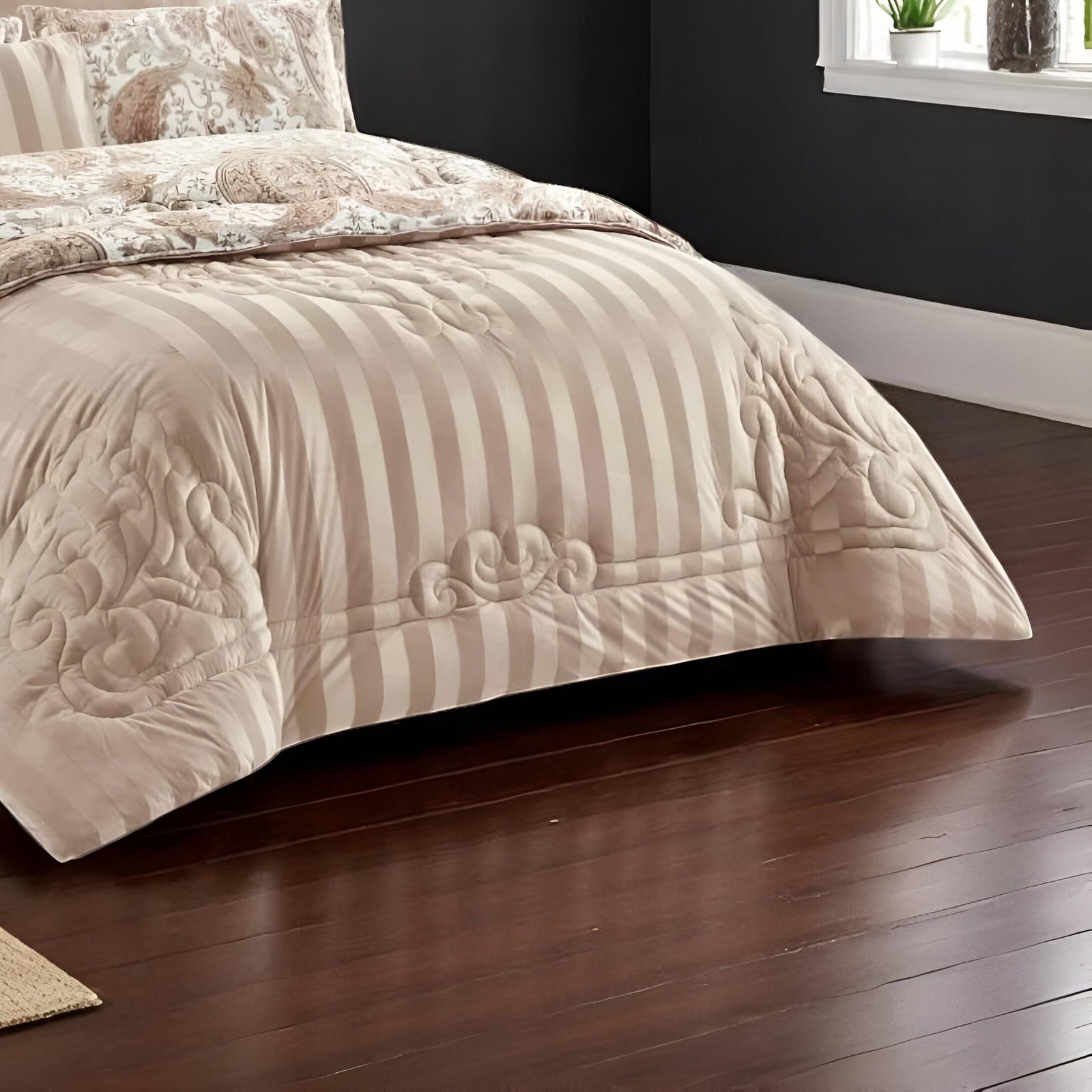 Elevate your bedroom with timeless grandeur through the Mora Spain Regal Stripes 6-Piece Comforter Set from the Lena Collection.