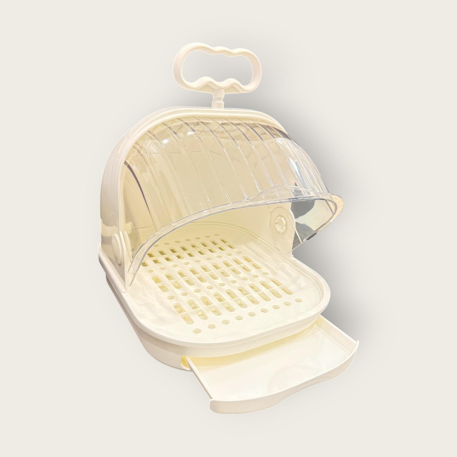Keep your baby's bottles organized, dry and germ-free with this smart, multi-use box. Its design with a transparent dome-shaped cover prevents dust from entering while allowing air to circulate for faster drying. Whether you want to store clean bottles or are looking for an elegant solution on your kitchen countertop, this box is the perfect choice