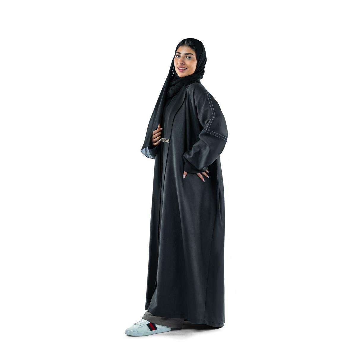 Add a touch of timeless elegance to your wardrobe with the Noir Abaya, embellished with stunning embellishments and an eye-catching brooch design. This abaya comes with a matching shawl, providing a complete and elegant look for any occasion.