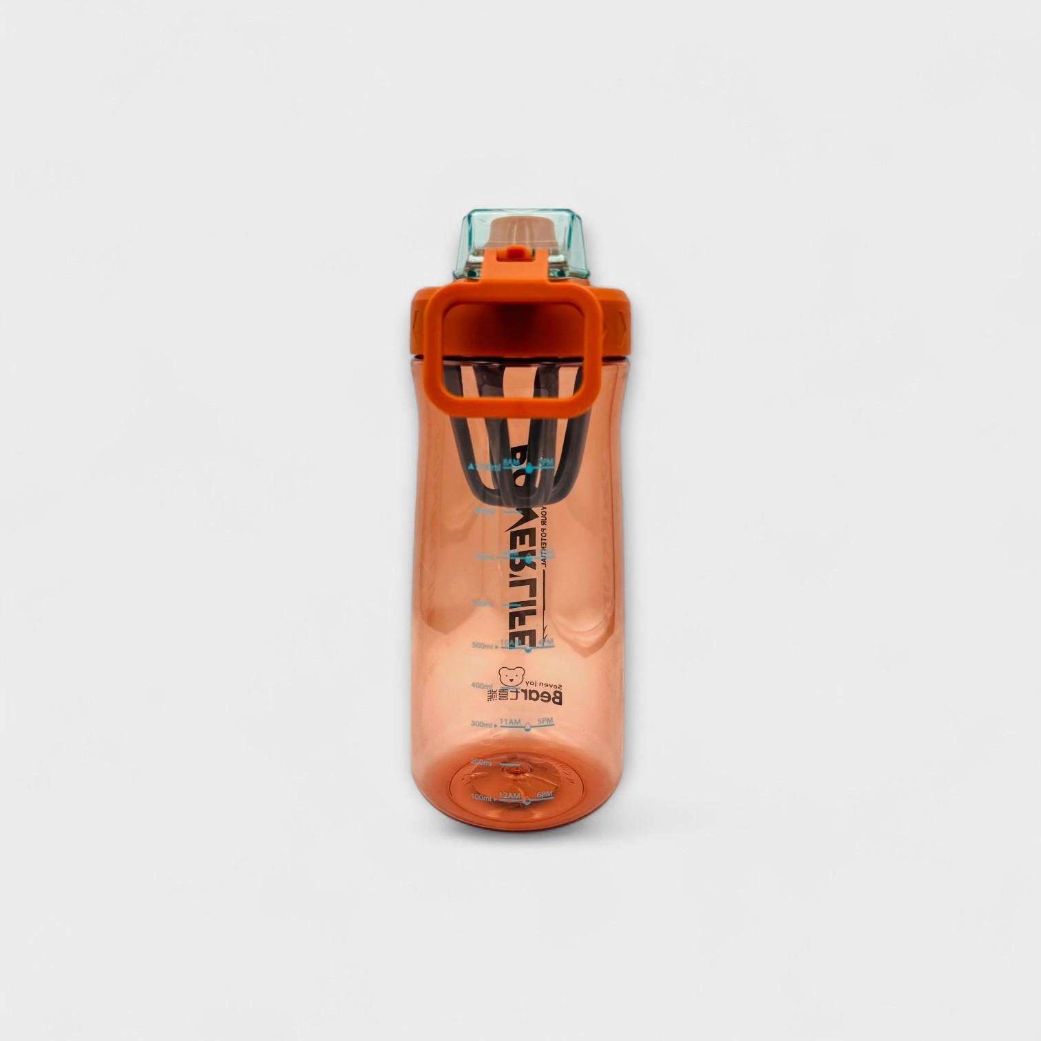 This vibrant orange bottle features a secure blue lock cap to prevent leaks and spills, plus an internal mixer grid for smooth blending of supplements, powders, or infused drinks.