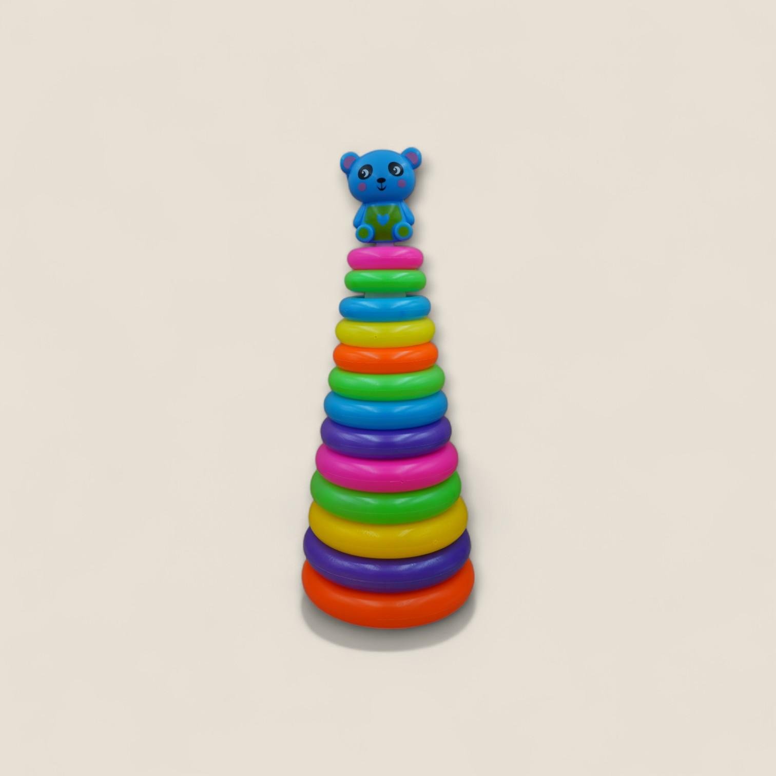 This rainbow bear tower is a great way to learn and play together! Made of soft, child-safe wood and painted in bright, non-toxic colors, it helps your child develop fine motor skills and hand-eye coordination, as well as learn colors. The cute design with a smiling bear makes it a great gift for birthdays or children's parties.
