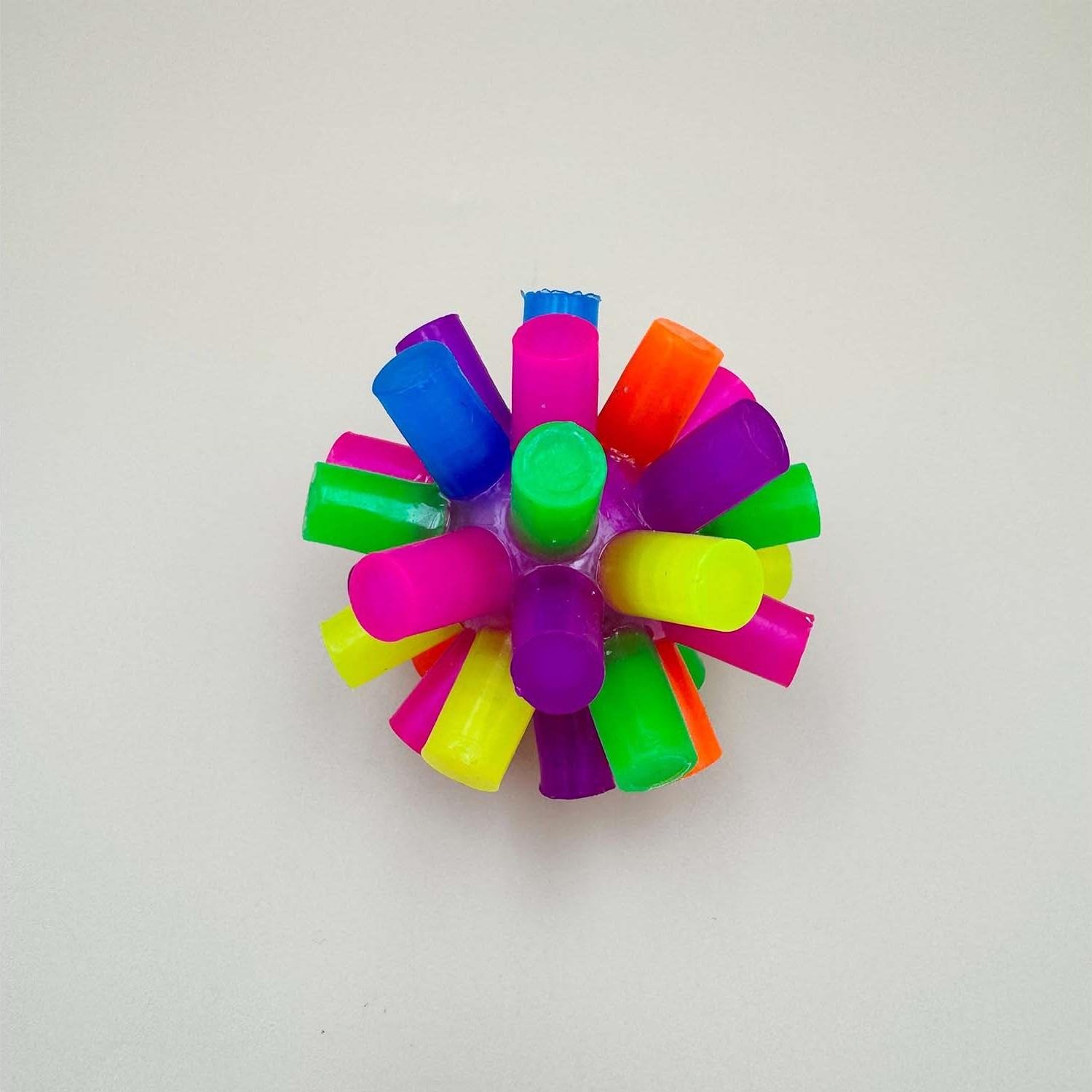 Add a touch of fun to your day with a rainbow spiked ball.