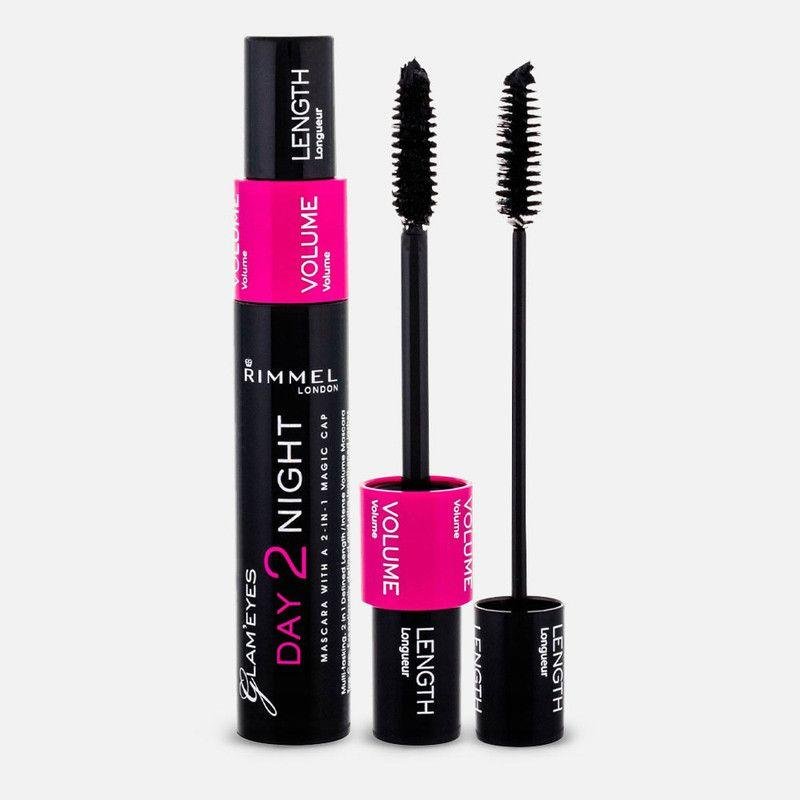 Get the best of both worlds with Rimmel Day 2 Night Waterproof Mascara—a 2-in-1 formula that lets you switch between length and volume with a simple twist.