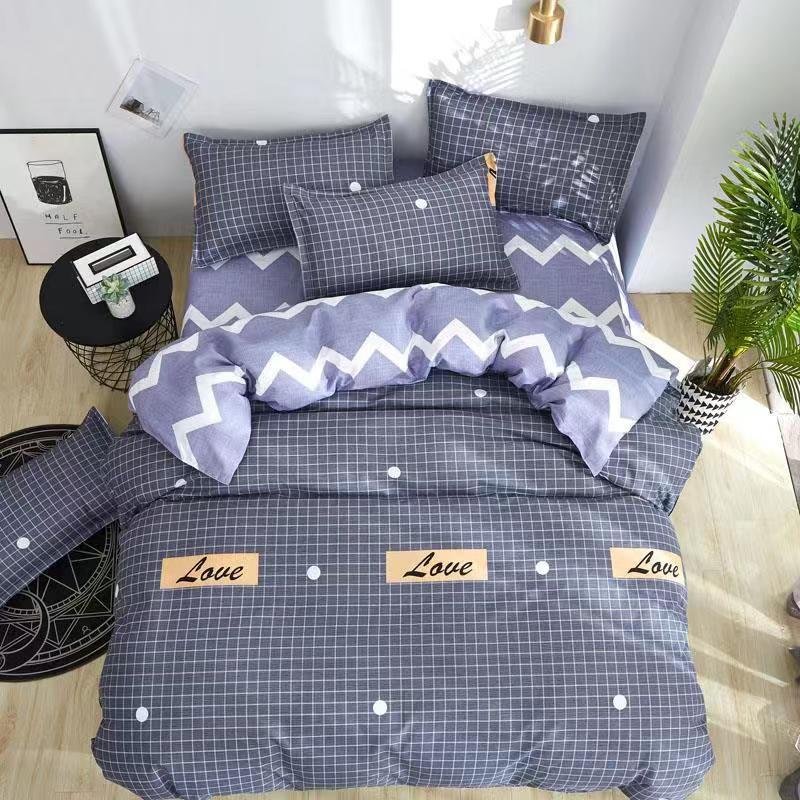Dreams are no longer beautiful only while sleeping, now your bed becomes more beautiful with Urban Grid Bed Cover Set printed with the word 'Love' - 4 Pieces