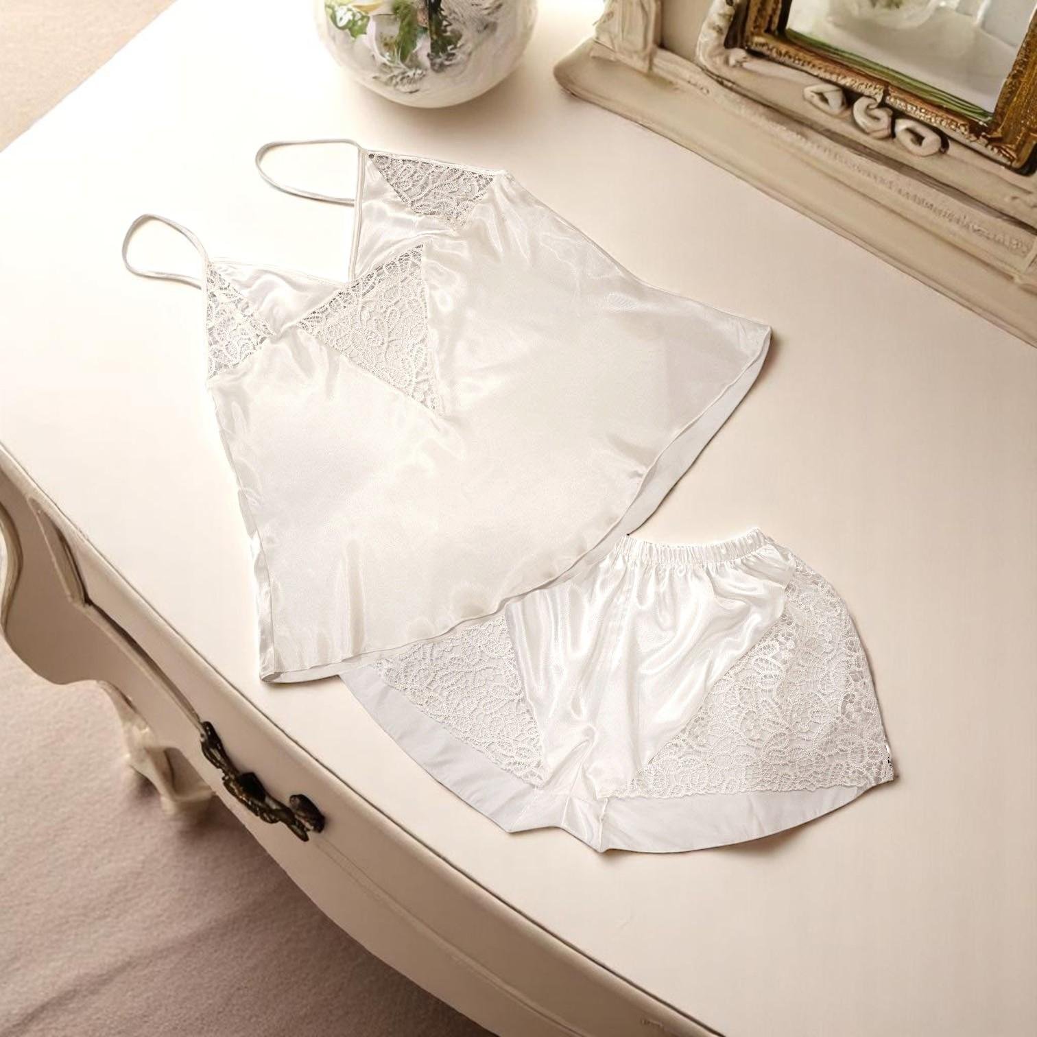 Give yourself the luxurious sleep experience you've always dreamed of with this Satin and Lace VIP Nightgown and White Cami Shorts Set