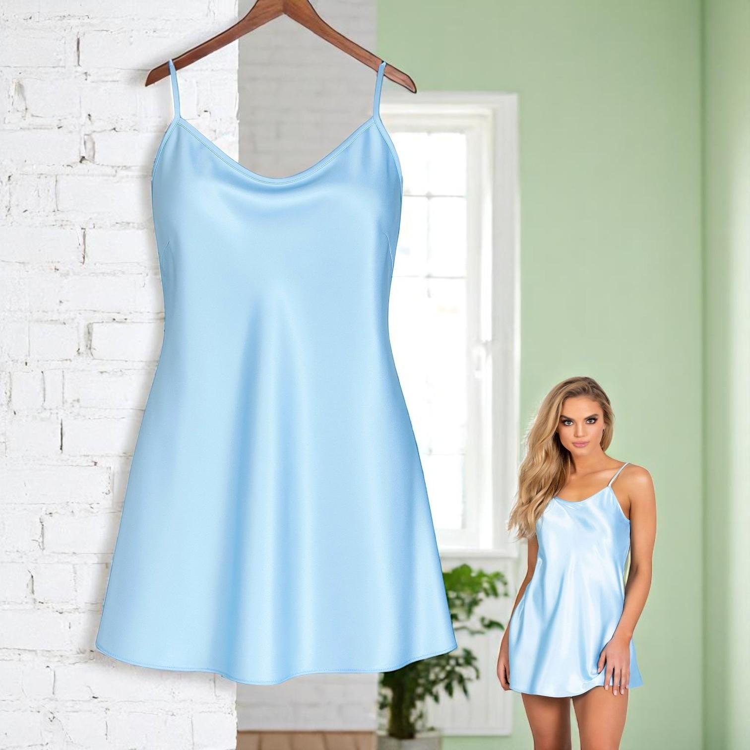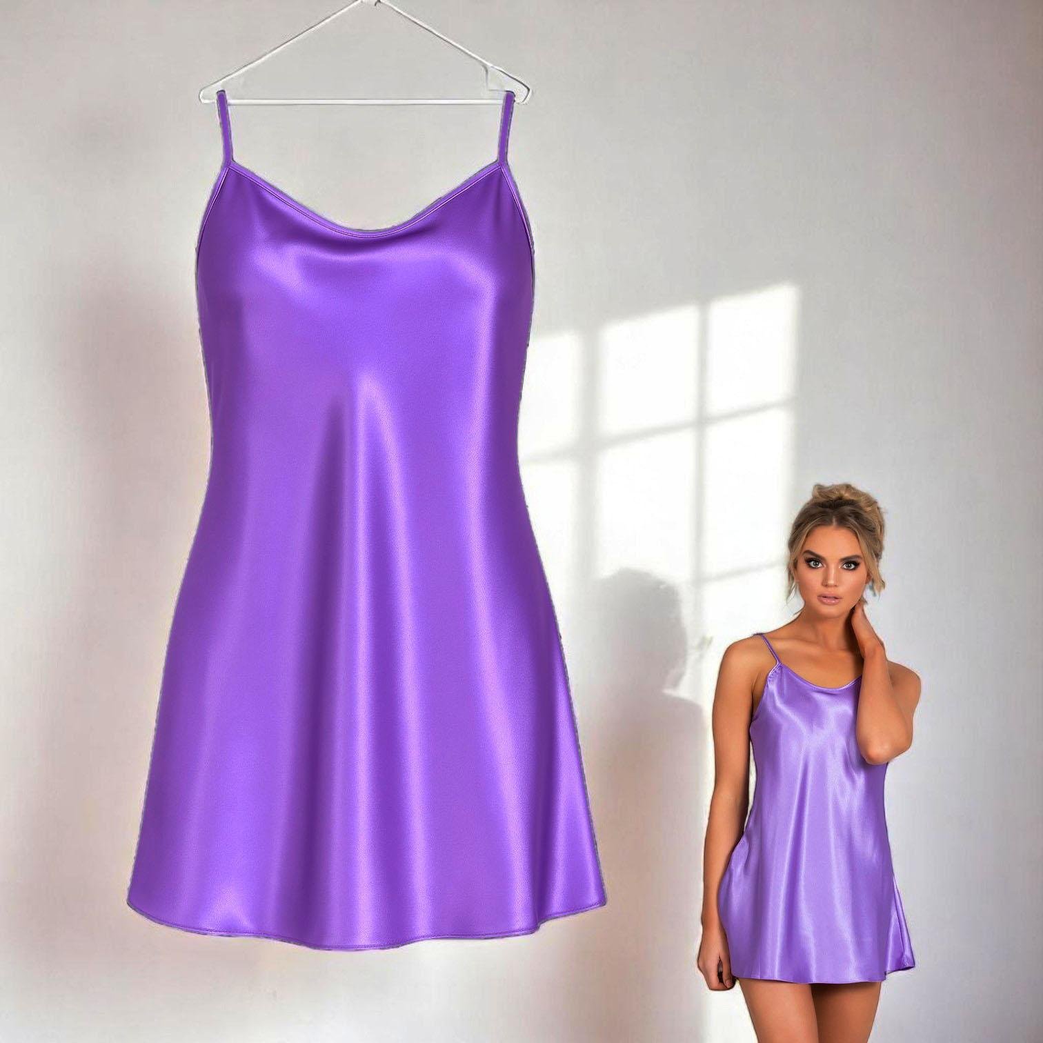 Treat yourself every night to an incomparable sense of softness and luxury with this VIP Silk Satin Spaghetti Strap Mini Nightwear Dress.