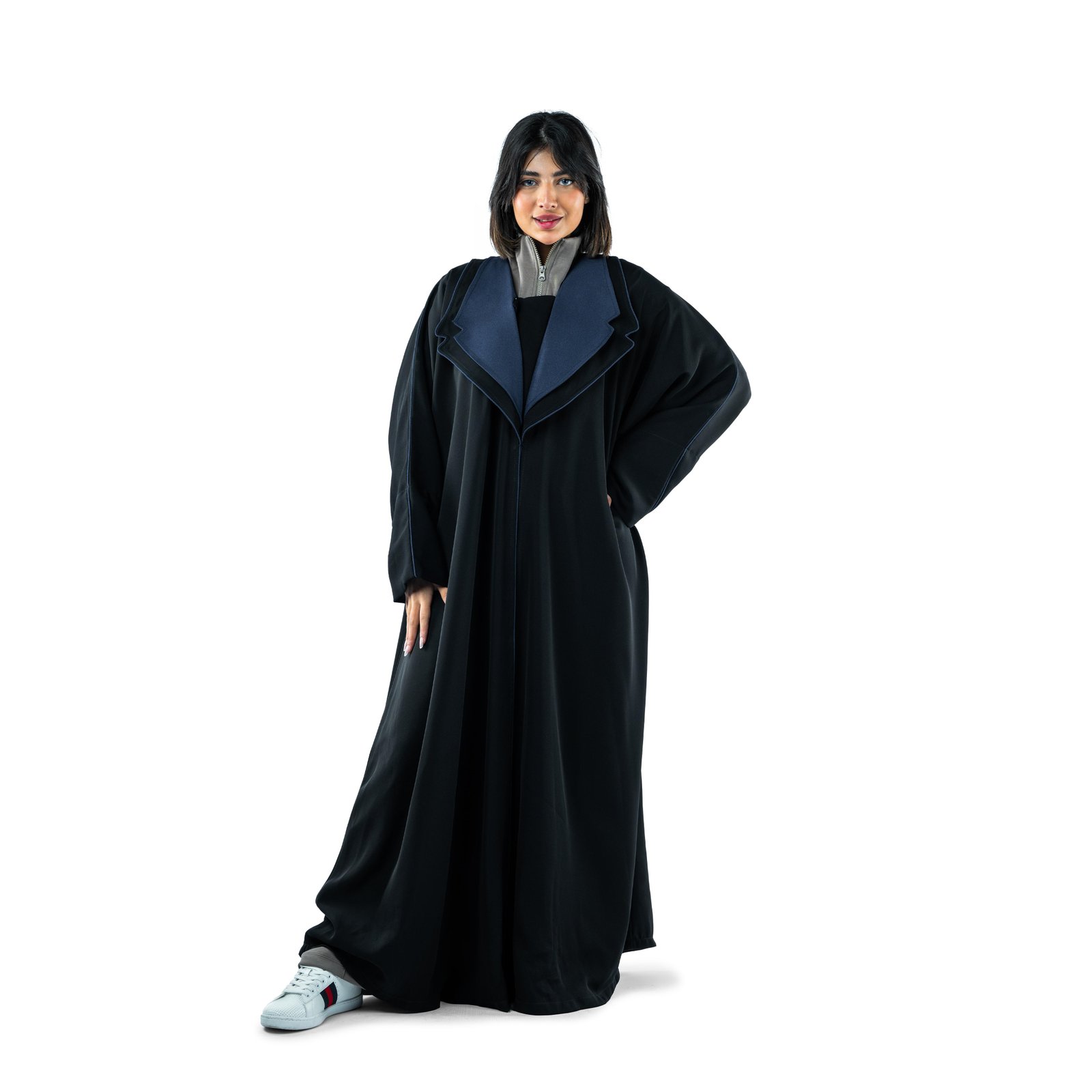 عباية مميزة تمنحك إطلالة أنيقة وجذابة. بياقة مبطنة ولابات بارزة مع قصّة عصريّة تدمج بين الأناقة الكلاسيكية واللمسة العصرية. مثالية للمناسبات أو للارتداء اليومي، توفر راحة لا مثيل لها مع تصميم يناسب جميع الأجسام.