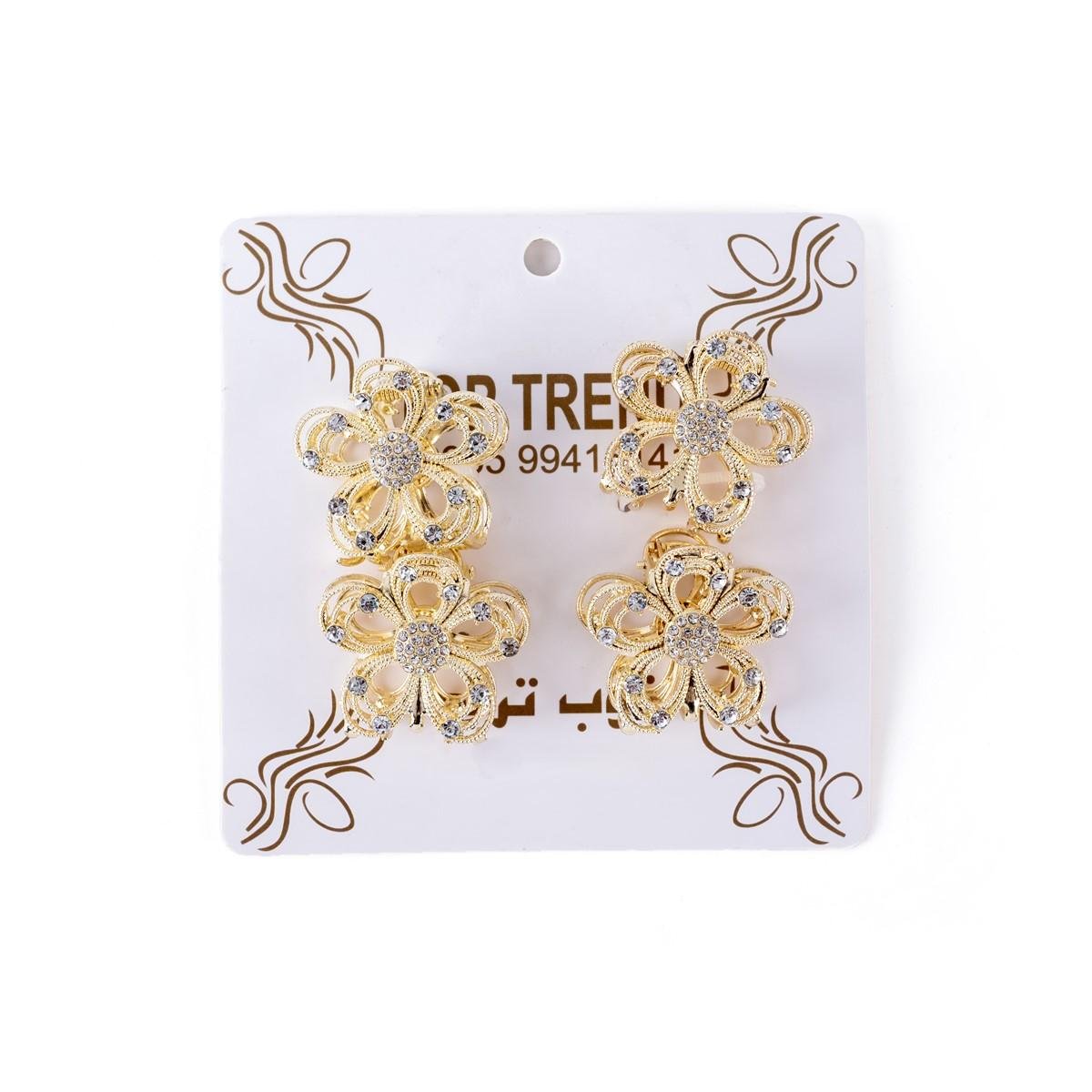 أكملي إطلالتك بأناقة مع مجموعة مشابك الشعر المزينة بأحجار الراين بتصميم زهري.