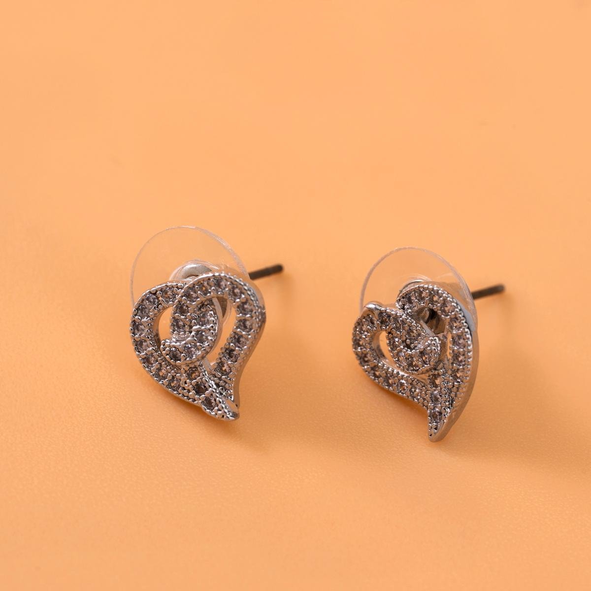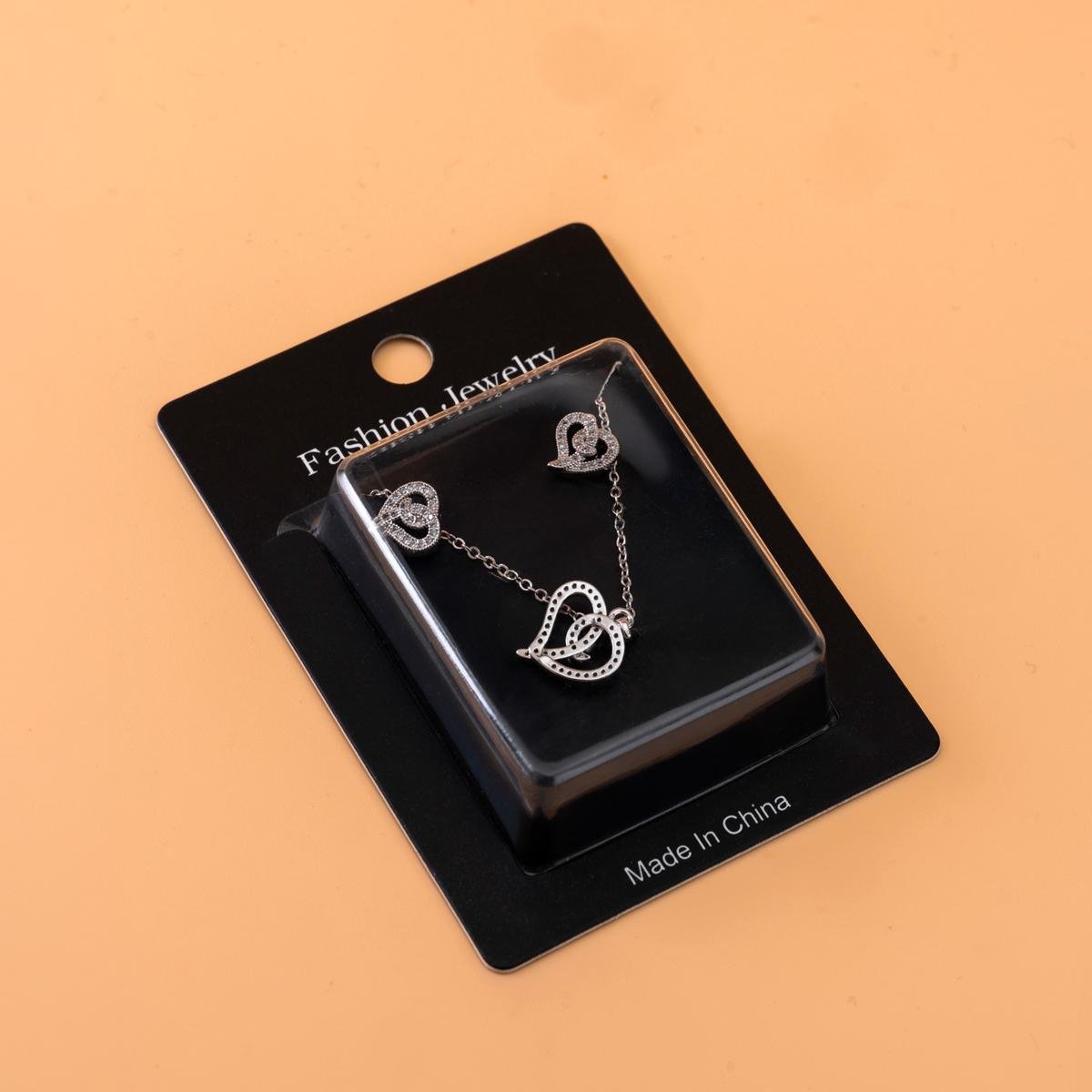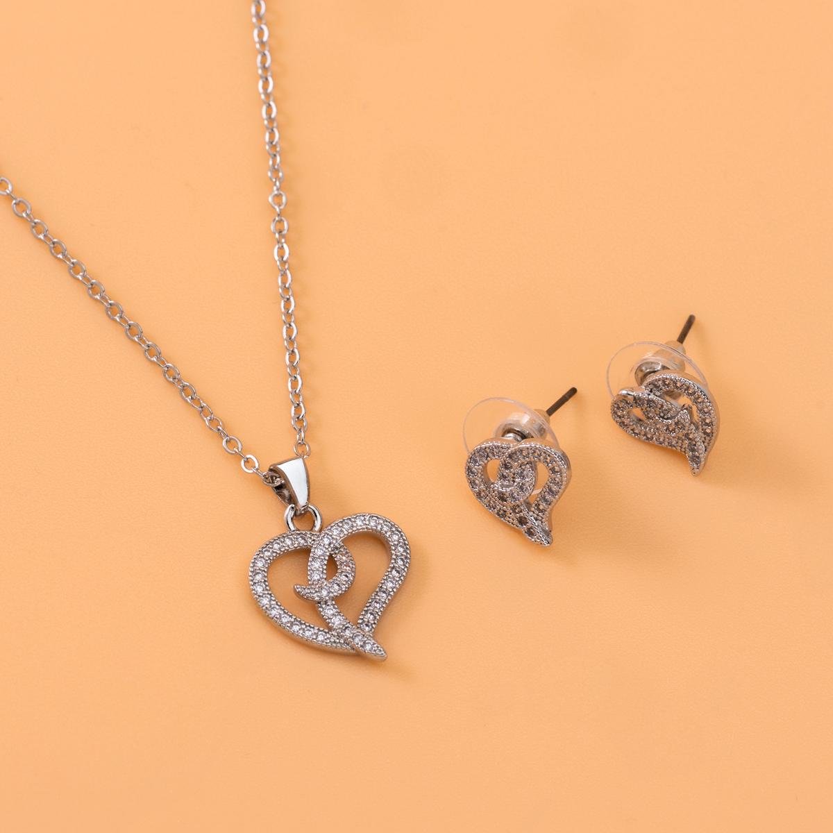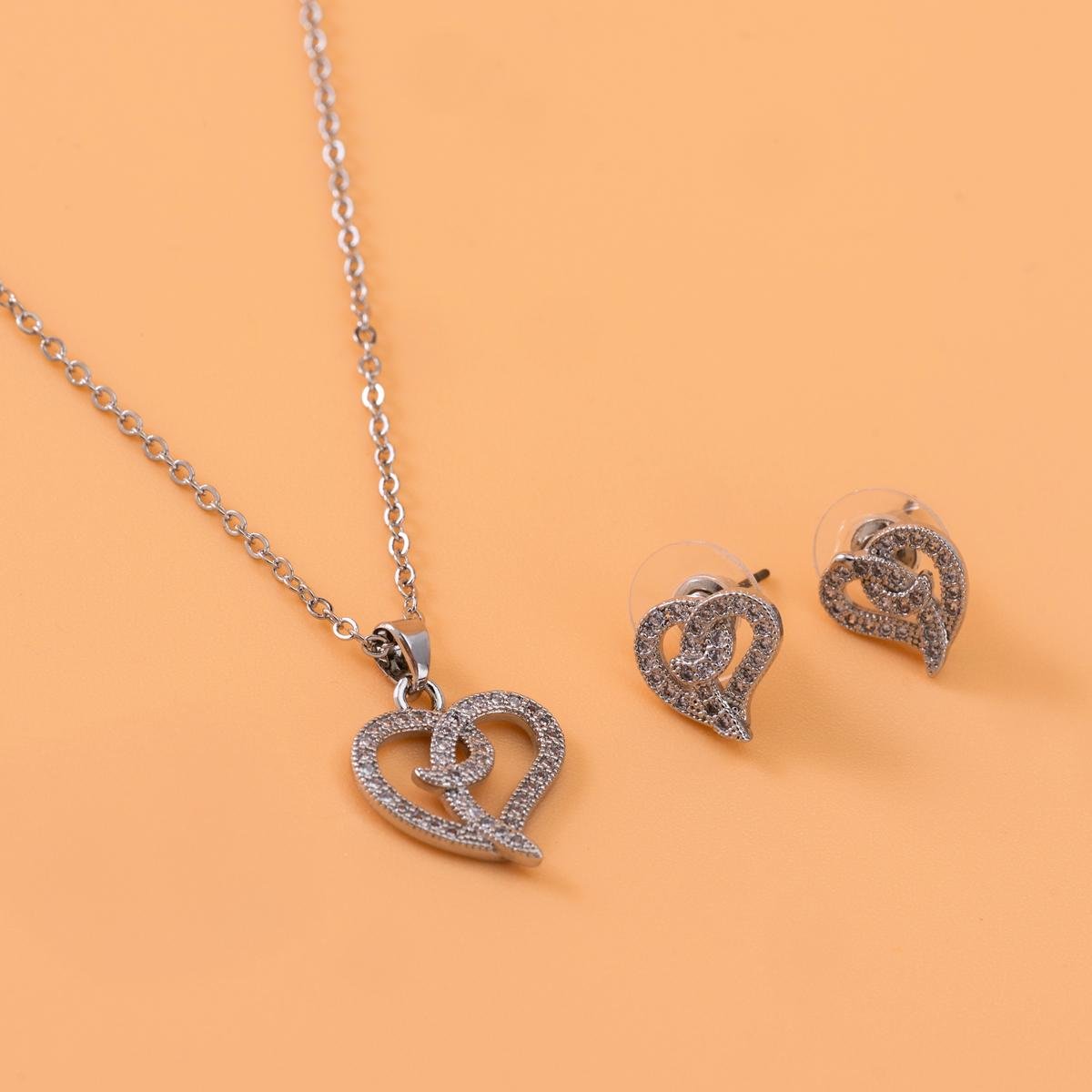 أضيفي لمسة من السحر إلى إطلالتك مع طقم المجوهرات الأنيق هذا مع طقم عقد وأقراط بعقدة قلب مرصّع بأحجار الراين