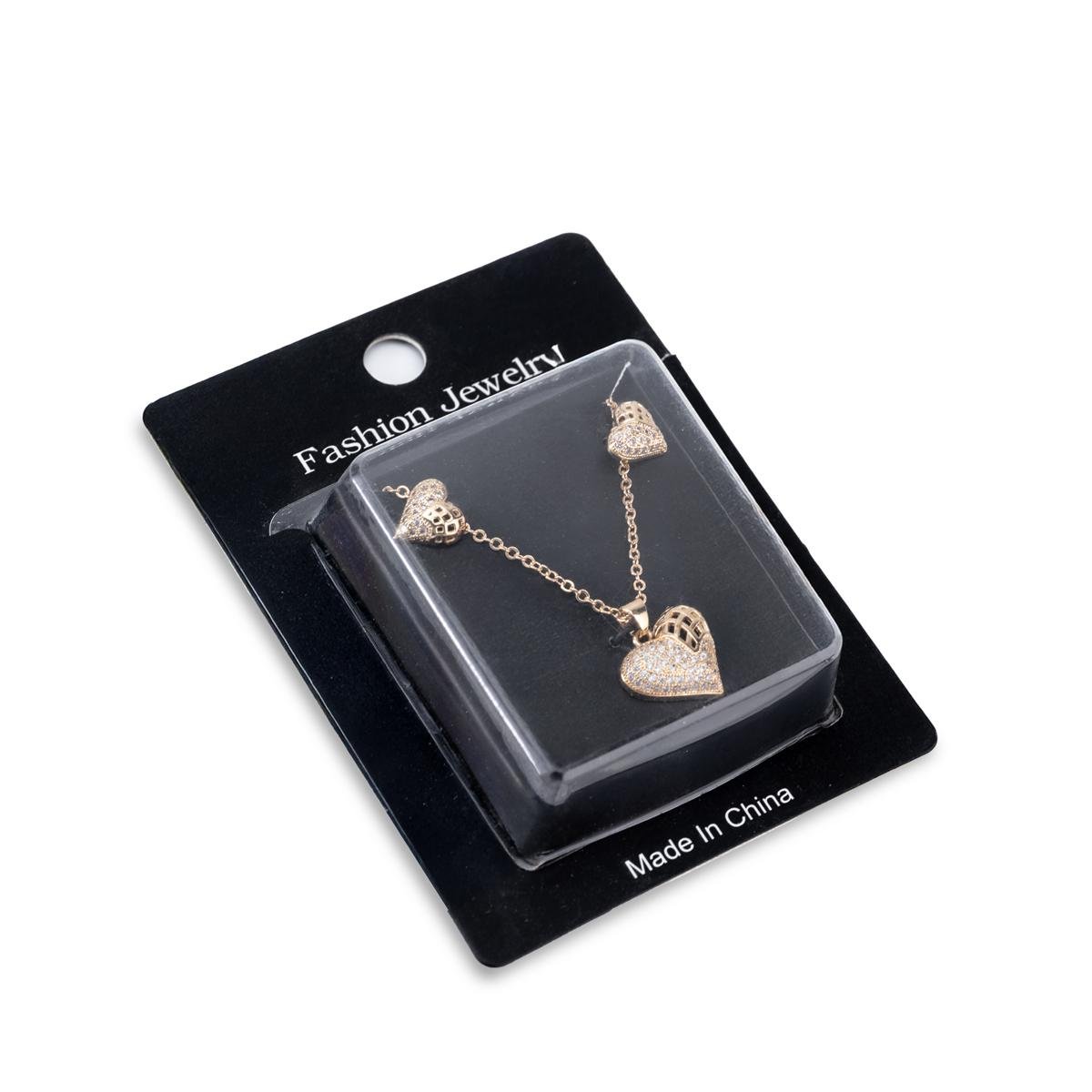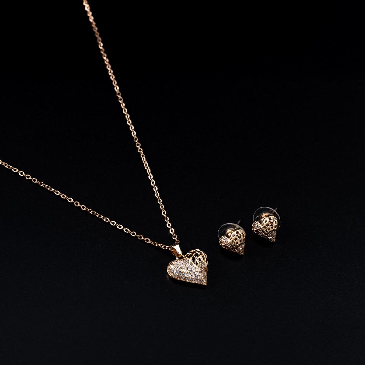 تتميز هذه المجموعة الرائعة من المجوهرات بقلادة قلب شبكية ساحرة وأقراط صغيرة متطابقة. مصممة بعناية، تجمع بين جاذبية التصميم المعاصر وأناقة لا تنتهي. سواء كنتِ ترتدينها لسهرة ساحرة أو لإضفاء لمسة مميزة على إطلالتك اليومية، ستلفت هذه المجموعة الأنظار بكل تأكيد.