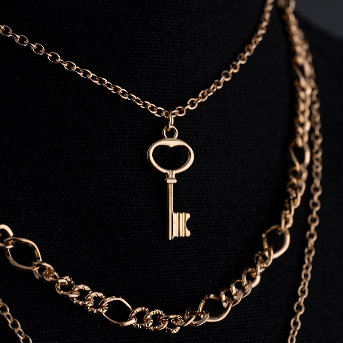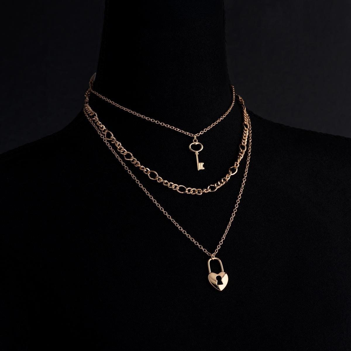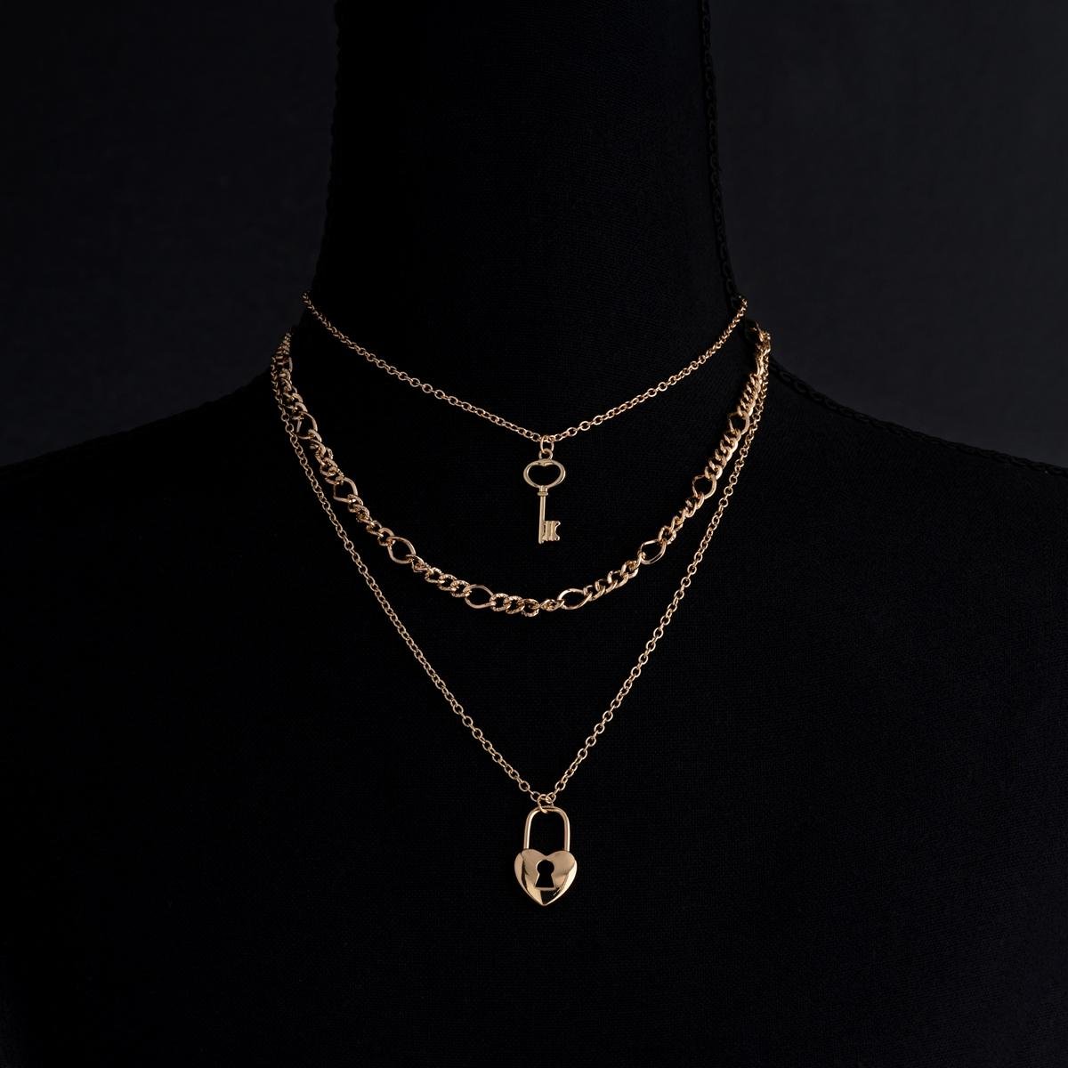 تميزي بأسلوبك الفريد مع هذه القلادة الرائعة بميدالية طبقات صناعية بشعار المفتاح وقفل القلب. تصميم أنيق ومتقن يعكس رمزية الحب والارتباط. تعد هذه القلادة قطعة مثالية للإطلالة اليومية أو للمناسبات الخاصة، حيث تضيف لمسة من الرقي والأناقة إلى أي زي.