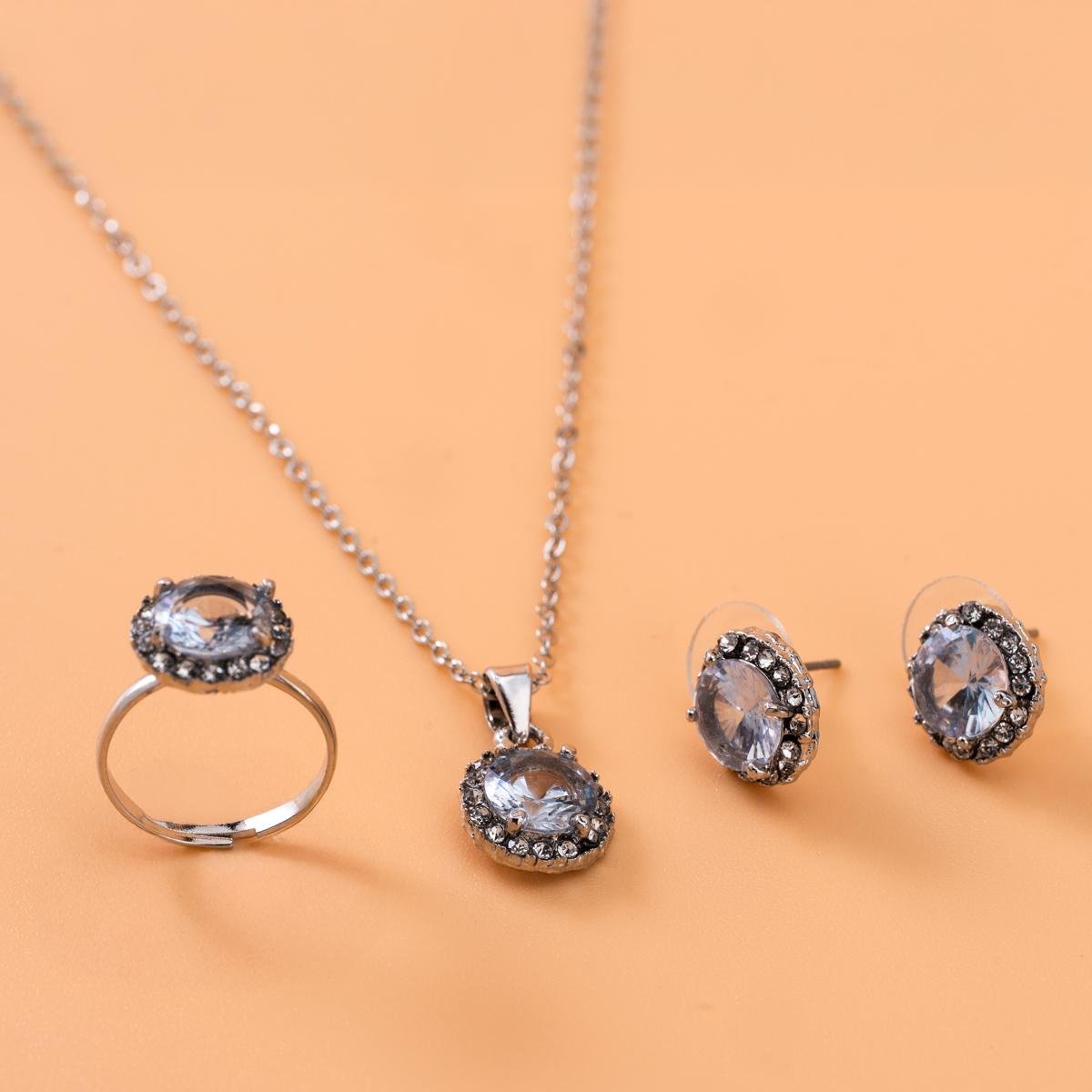 لمسة من الأناقة والبريق في كل مناسبة مع طقم قلادة وأقراط كريستالية فاخرة بتصميم دائري فاخر