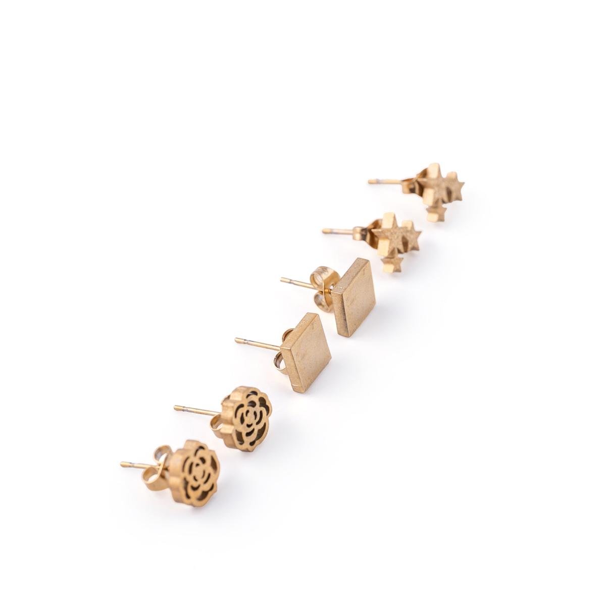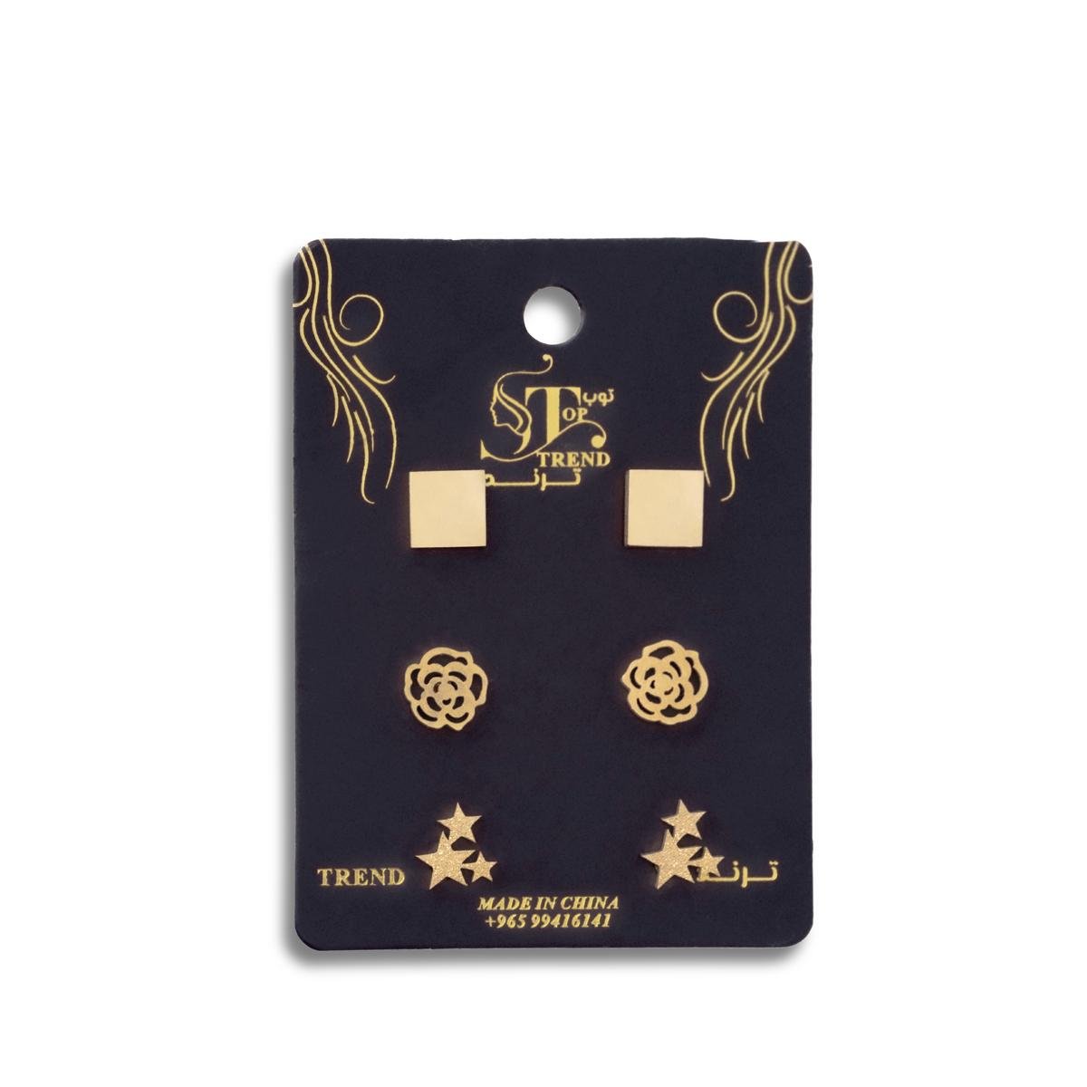 أضفي لمسة من الأناقة إلى إطلالتك مع مجموعة الأقراط المذهلة بتصميم مربع صناعي، زهرة الورد، وثلاثة نجوم. تتميز هذه الأقراط بمزيج فريد من التصاميم الهندسية والزهورية، مما يجعلها إكسسوارًا متعدد الاستخدامات لكل من المناسبات اليومية والرسمية. مصنوعة بدقة وعناية، فهي خفيفة الوزن، مريحة للارتداء، ومصممة لتدوم.
