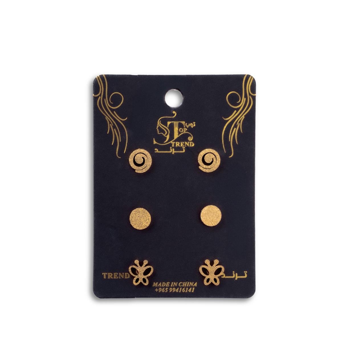 تألقي مع هذا الطقم الرائع من الأقراط، الذي يجمع بين الأناقة والتنوع. يتميز هذا الطقم بثلاثة تصاميم فريدة: اللولب العصري، الفراشة الرقيقة، والدائرة ذات النقوش المحكمة مصممة جميعها لإضافة لمسة من الجاذبية والرقي إلى أي إطلالة. سواء كنتِ تستعدين لمناسبة خاصة أو ترغبين في إضافة لمسة تألق يومية، فإن هذه الأقراط هي الخيار الأمثل.
