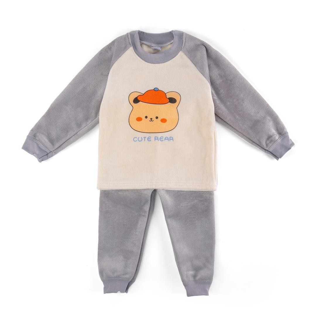 بلوزة دافئة بطبعة دب ساحرة وبنطلون متناسق، مثالي للخروجات الكاجوال أو وقت اللعب في المنزل.