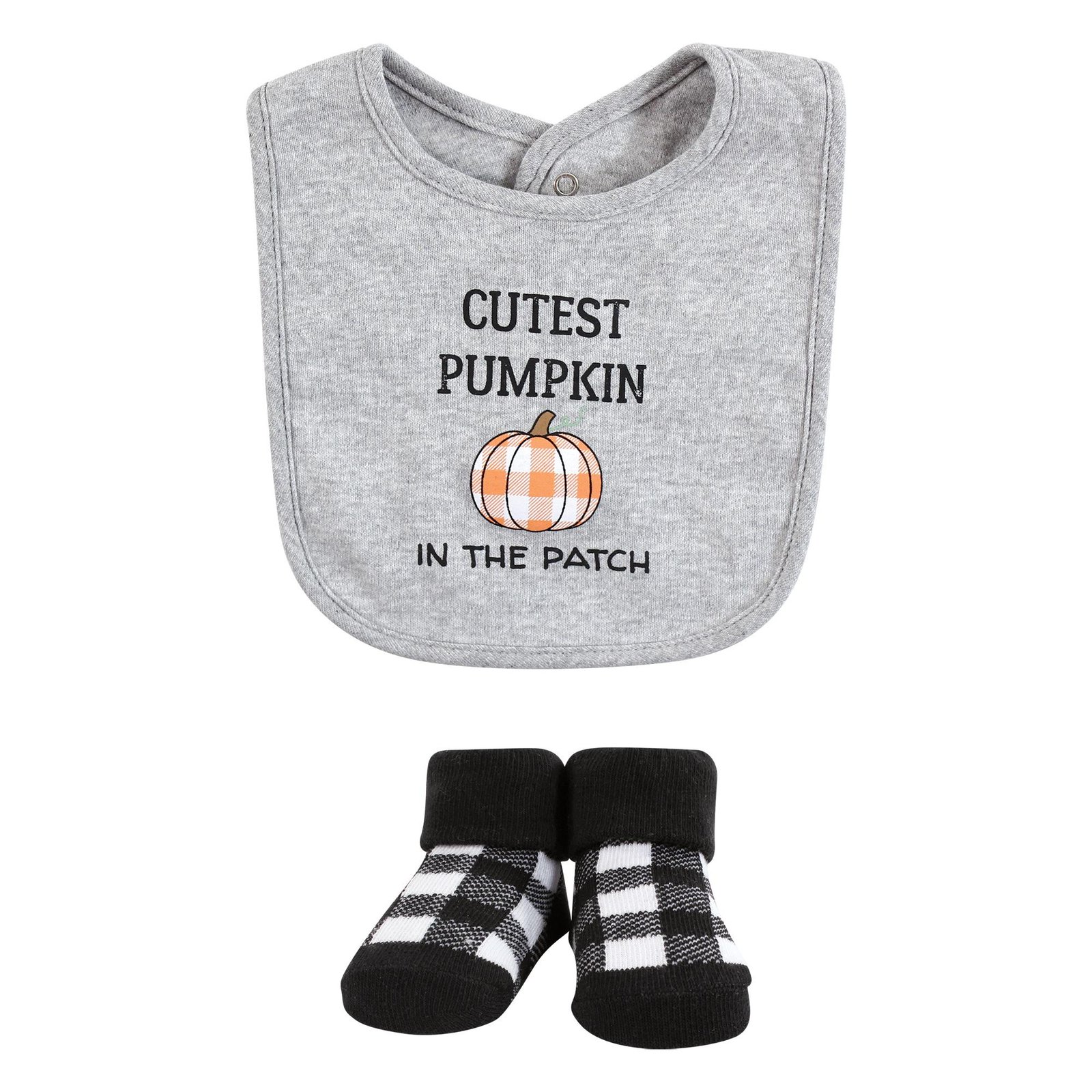طقم أطفال مكون من مريلة وشراب قدم. تتميز المريلة بتصميم شاحنة اليقطين المرحة التي تحافظ على نظافة ملابس طفلك أثناء تناول الطعام، بينما توفر الأربطة المتطابقة دفء وراحة للقدمين الصغيرة. طقم موسمي وجذاب سيضيف لمسة خاصة إلى خزانة ملابس طفلك هذا الخريف.
