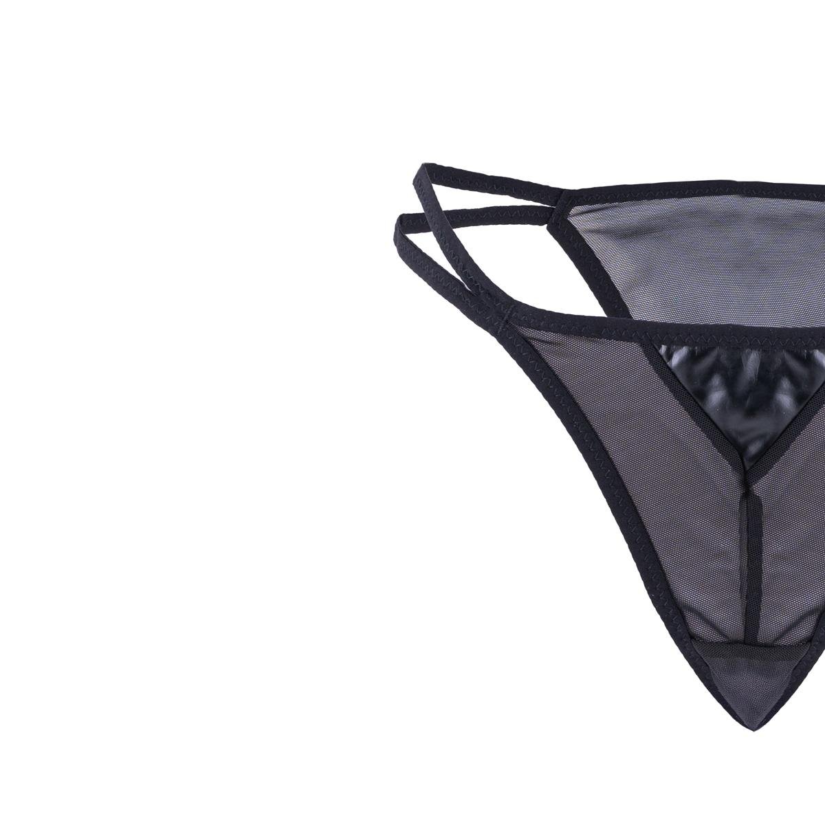هل أنتي مستعدة لإطلالة تخطف الأنظار طقم حمالة صدر من الجلد الصناعي الأسود وثونغ شبكي هو سر جمالك