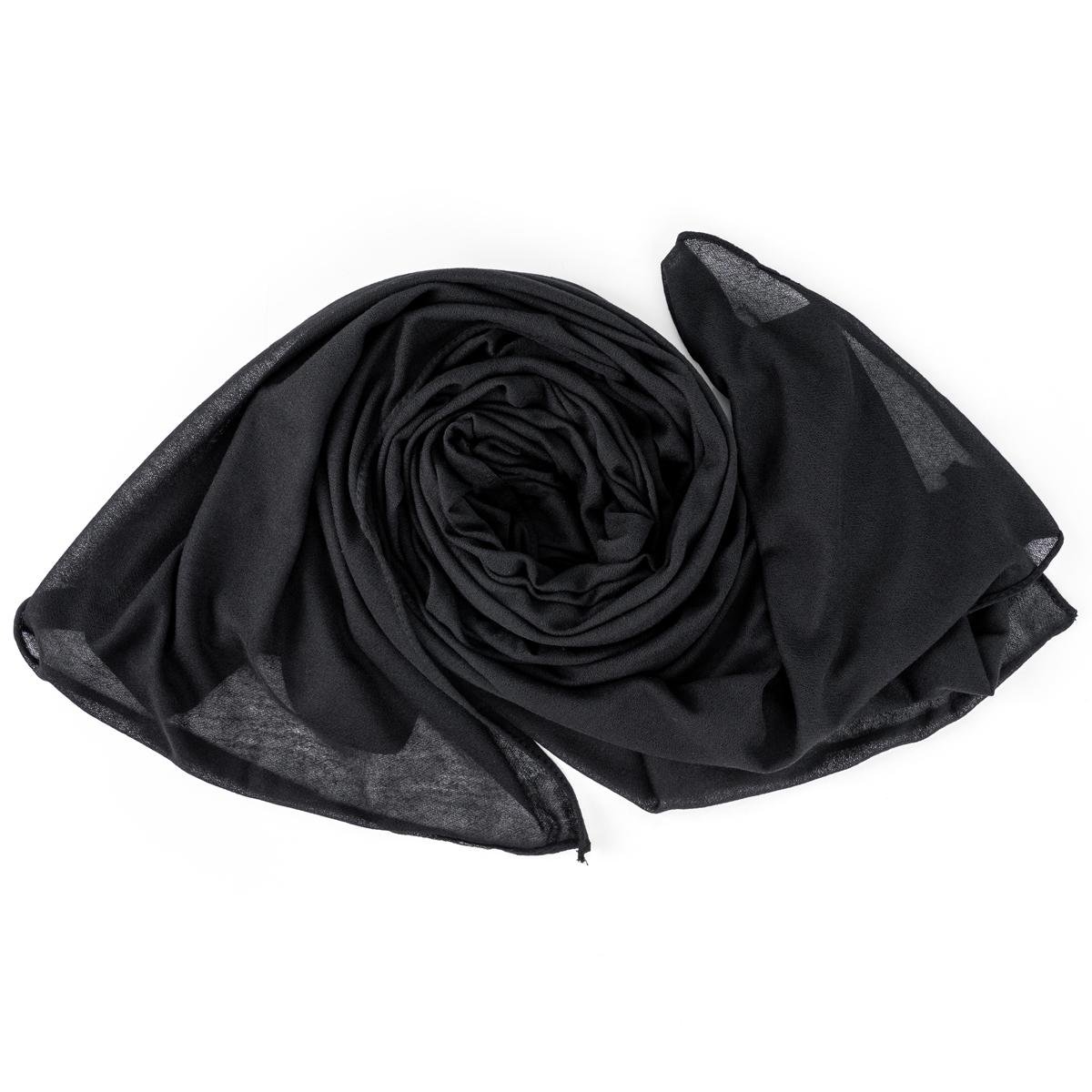 امنحي إطلالتك لمسة من الأناقة مع شيلتنا المصنوعة من القطن الناعم والشيفون الفاخر باللون الأسود الداكن مع شيلة قطن مصنوع من الشيفون - أسود داكن