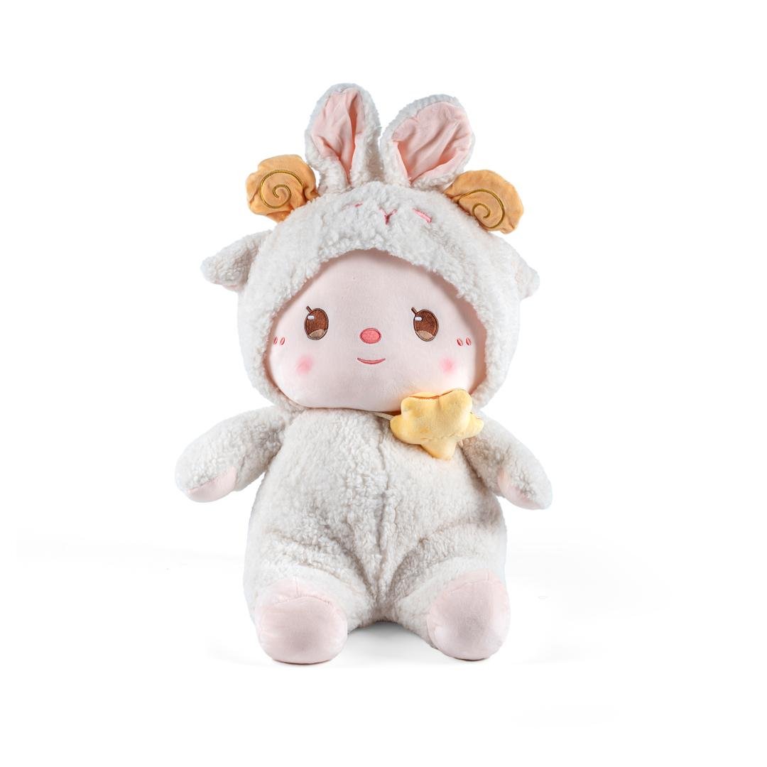 تأتي هذه الدمية بزي كبش رائع مزود بقرون ملتفة وقماش ناعم يشبه الصوف، لتكون الرفيق المثالي للعناق والنوم. تصميمها اللطيف يجعلها خيارًا رائعًا لغرف الأطفال، كهدية مميزة، أو حتى كقطعة ديكور تضيف لمسة مرحة للمكان.