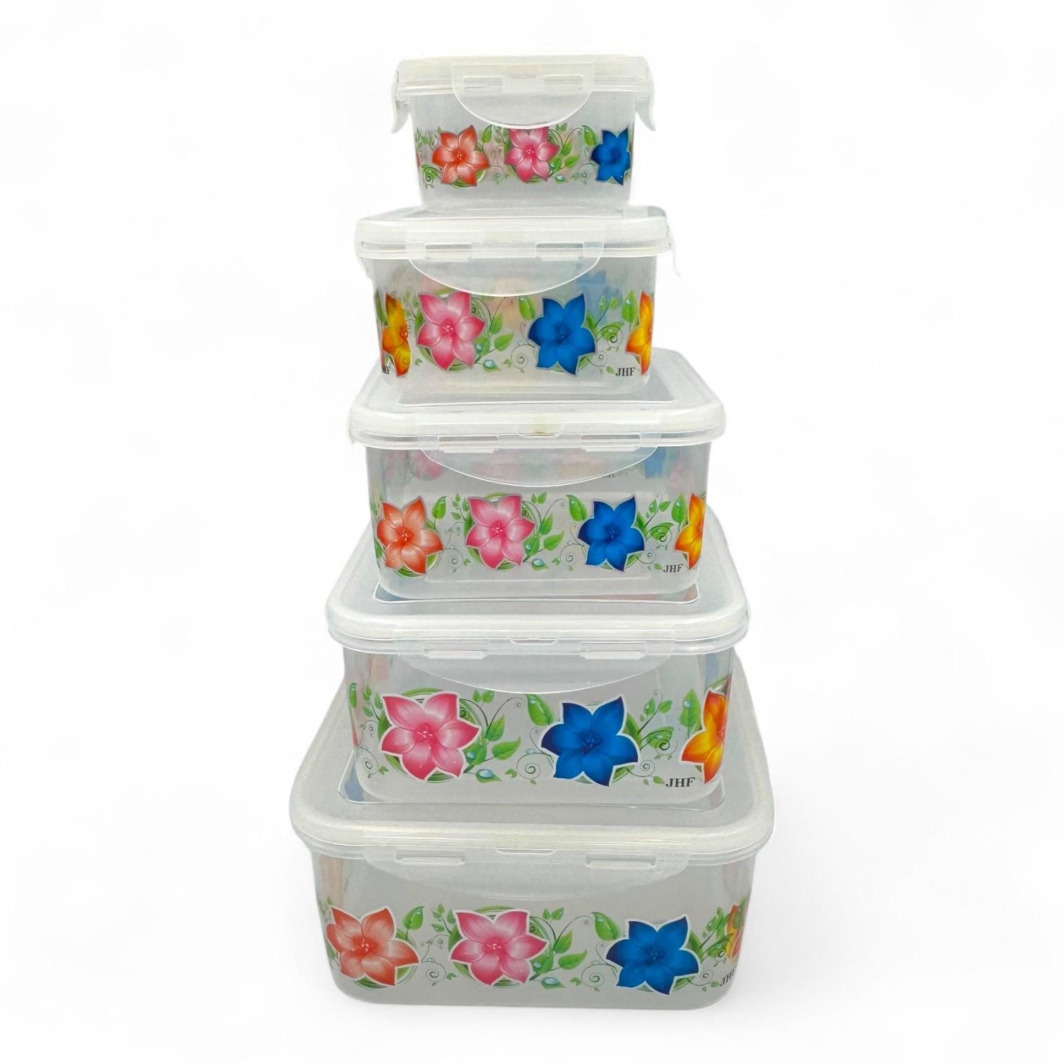 نظمي مطبخك بسهولة واحفظ طعامك طازجا مع مجموعة علب التخزين ذات الطبعة الزهورية الجذابة! مثالية لحفظ بقايا الطعام، تحضير الوجبات، أو حتى تغليف الغداء، هذه العلب مصممة لتكون عملية وعصرية في نفس الوقت. الأغطية المحكمة تحافظ على الطعام طازجا، بينما البلاستيك المتين يضمن استخداماً طويل الأمد. بالإضافة إلى ذلك، تصميمها القابل للتكديس يوفر مساحة في الخزانة!