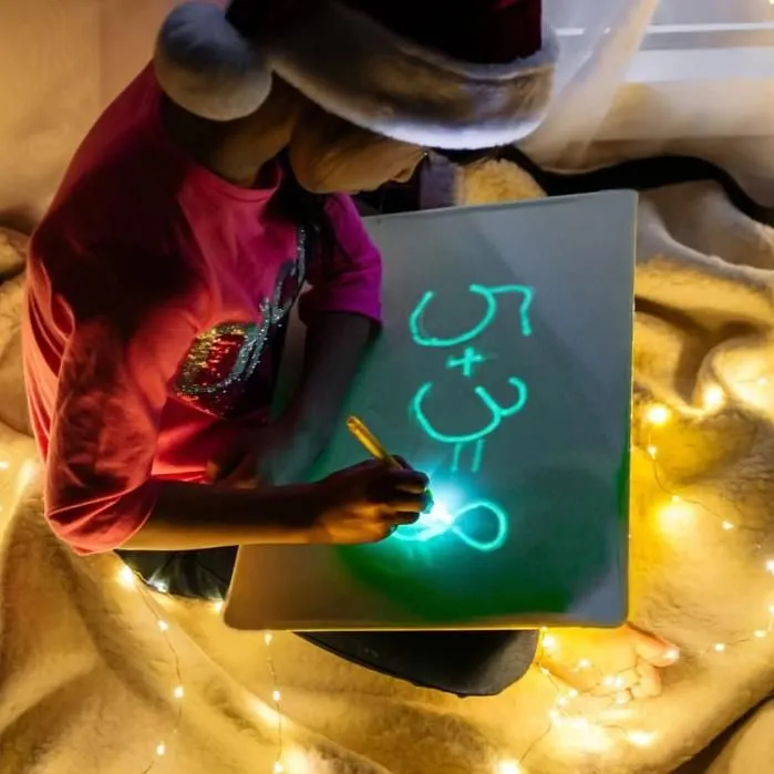 لوح رسم مضيء للأطفال مع قلم سحري وقوالب تشكيل.