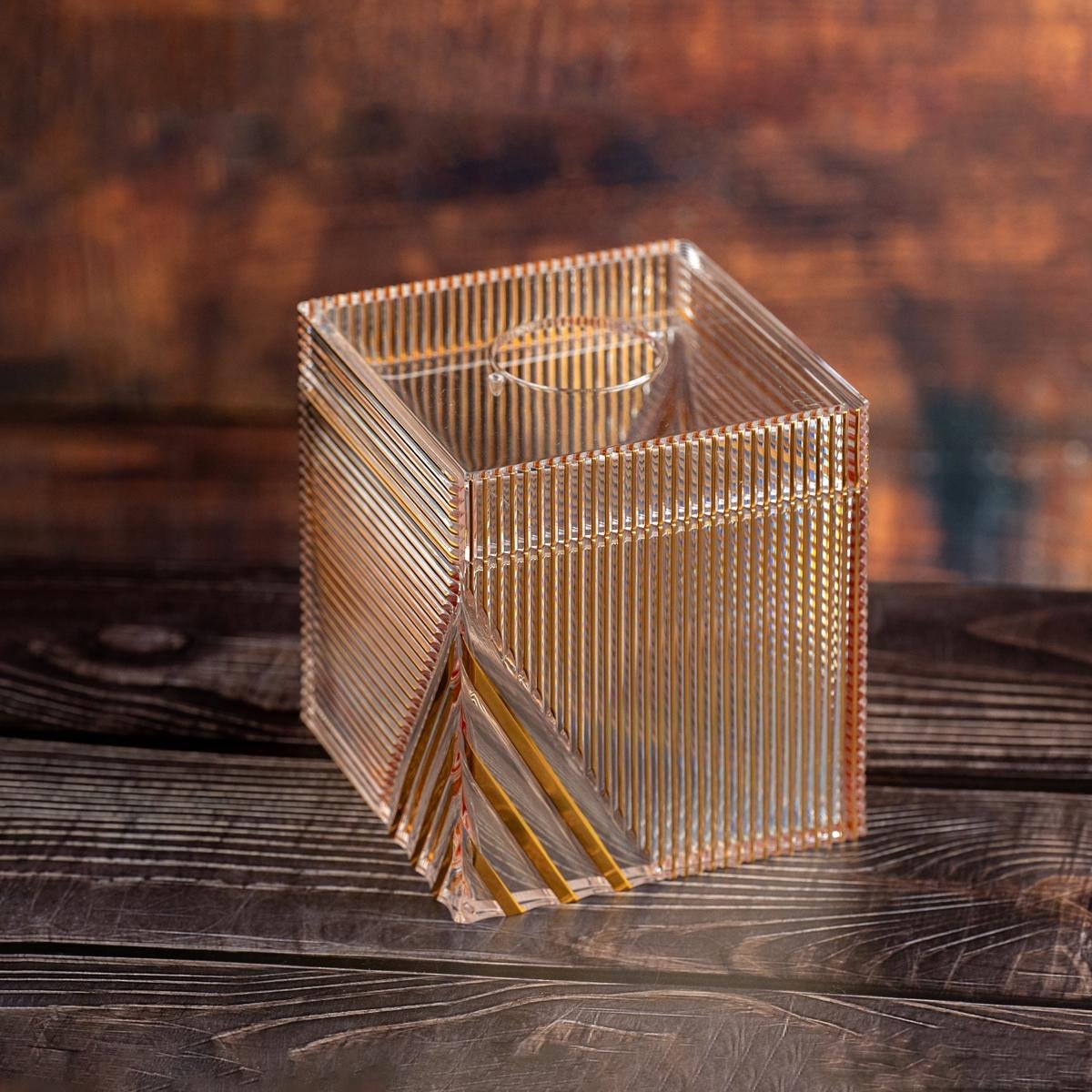 علبة مناديل أكريليك مربعة بلمسة ذهبية وتصميم هندسي