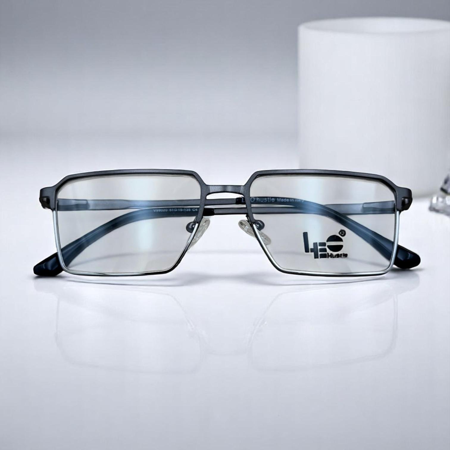 احصل على مظهر أنيق وحماية متكاملة مع نظارات مربعة مضادة للضوء الأزرق بجسر مسطح وإطار رمادي معدني.