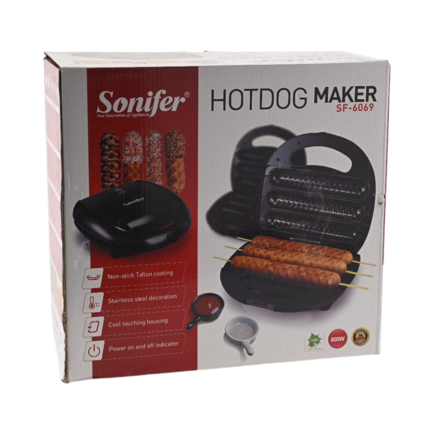 صانعة الهوت دوغ من سونيفر هي الطريقة المثالية لصنع الهوت دوغ في المنزل. تتميز هذه الآلة سهلة الاستخدام بسطح طهي غير لاصق وفوهة صب مريحة لتقليب وتقديم سهل.