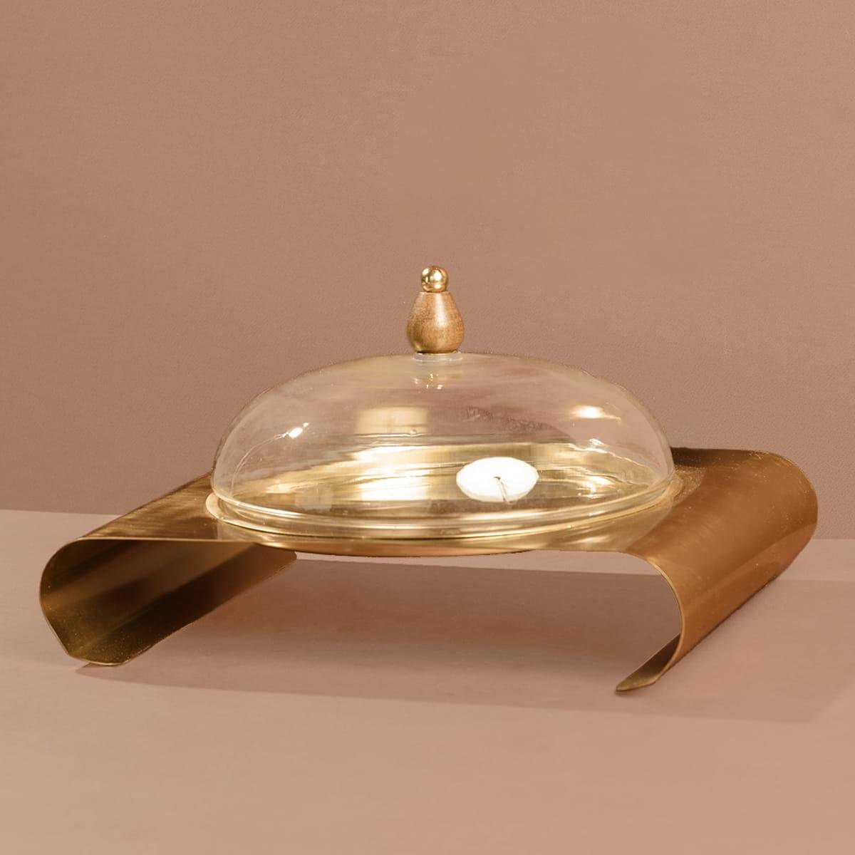طبق هندي أنيق للحلويات المزود بغطاء زجاجي شفاف. مثالي لتقديم الحلوى، التمر، المكسرات أو الفواكه المجففة، ويجمع بين الطابع التراثي والمودرن.