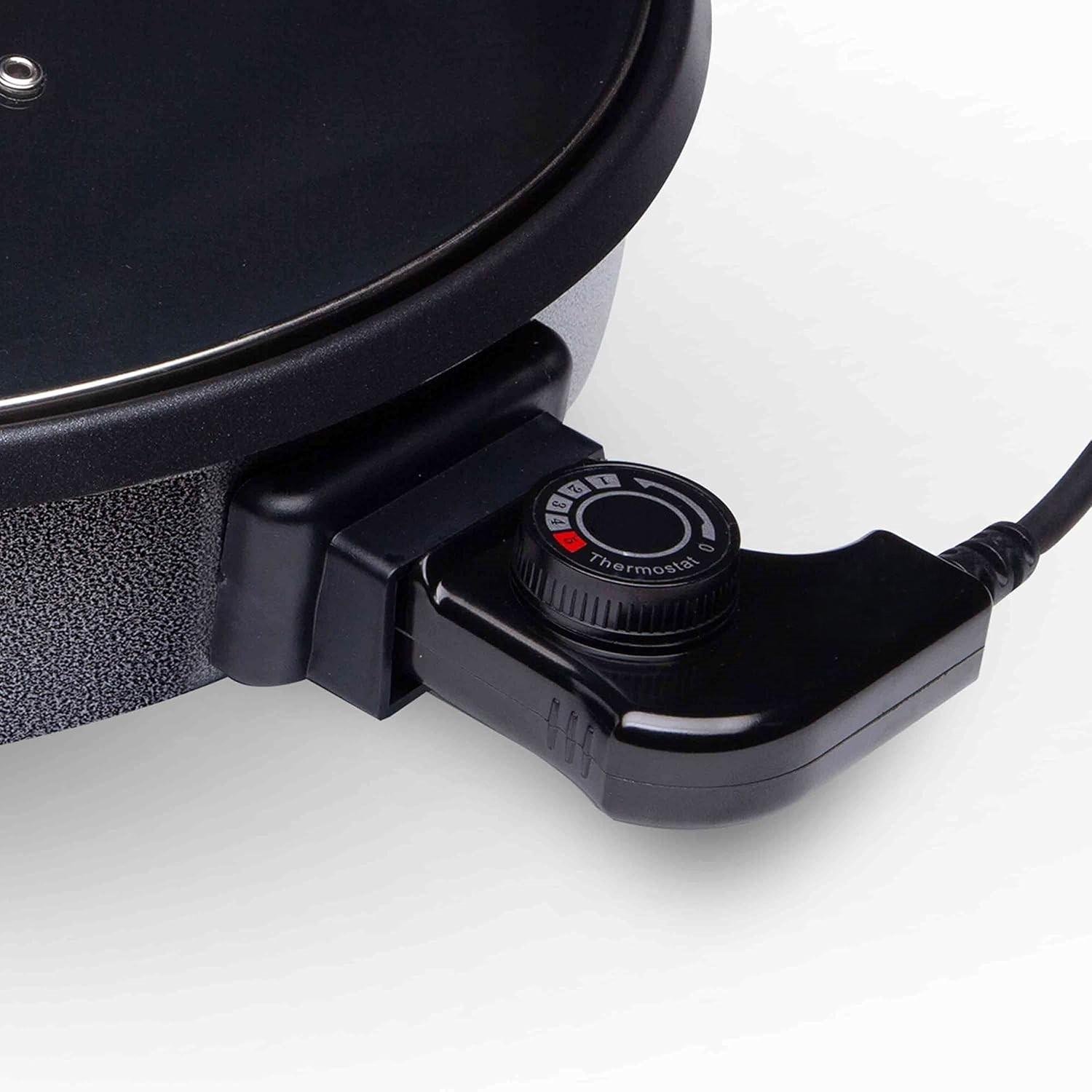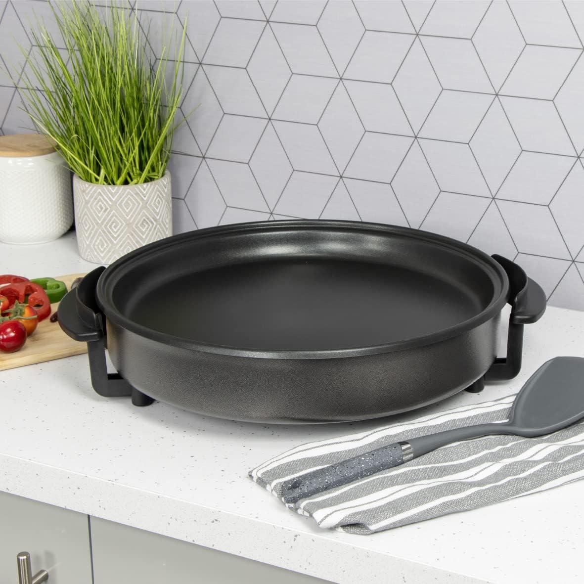 الحجم: قطر 42 سم – سطح طهي كبير جدًا – مصدر الطاقة: 220-240 فولت، 50/60 هرتز، 1500 واط – تصميم بريطاني – مقبض ترموستات قابل للتعديل