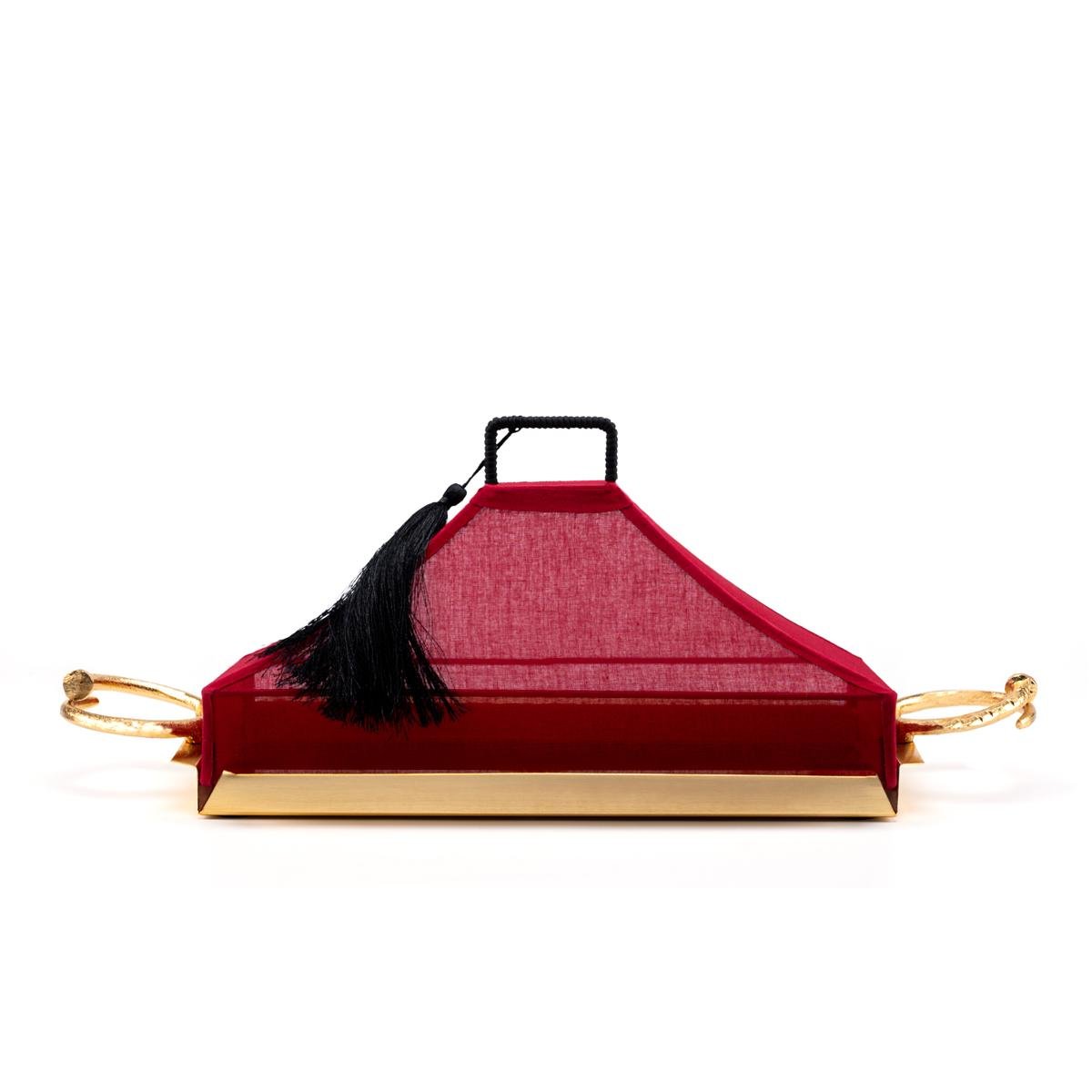 تتميز بمقبض مسمار أنيق على طراز كارتييه. مصنوعة بدقة، هذه الصينية مثالية لتقديم الحلويات والمأكولات الشهية الأخرى بأسلوب راقٍ. تأتي الصينية مع غطاء قماش قطني أنيق، لضمان بقاء الحلويات طازجة ومحفوظة.