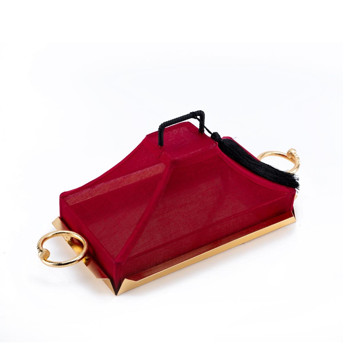 تتميز بمقبض مسمار أنيق على طراز كارتييه. مصنوعة بدقة، هذه الصينية مثالية لتقديم الحلويات والمأكولات الشهية الأخرى بأسلوب راقٍ. تأتي الصينية مع غطاء قماش قطني أنيق، لضمان بقاء الحلويات طازجة ومحفوظة.