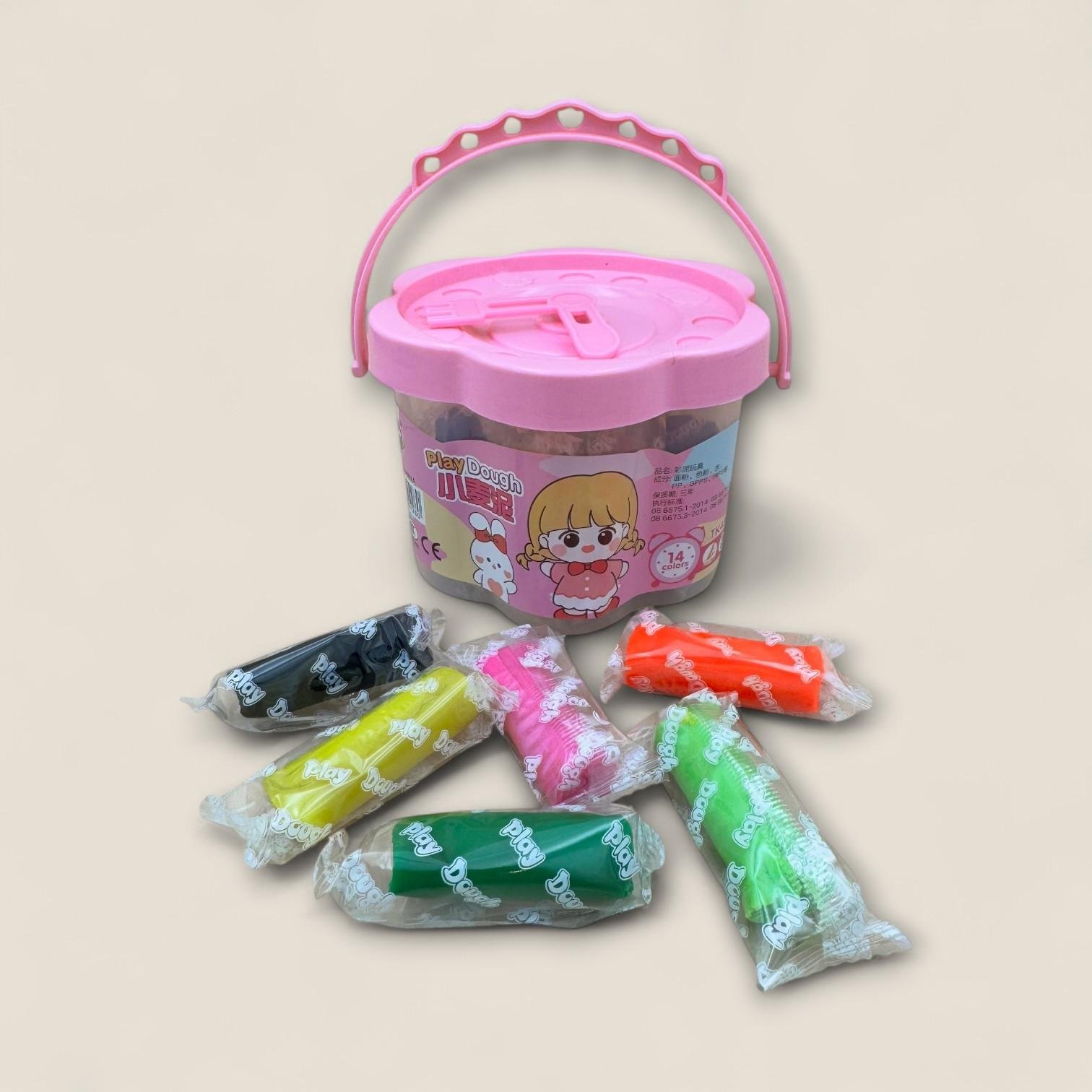 طقم معجون تشكيل بـ14 لونا زاهيا دلو بمقبض وتصميم فتاة كرتونية لطيف متعة إبداعية للأطفال