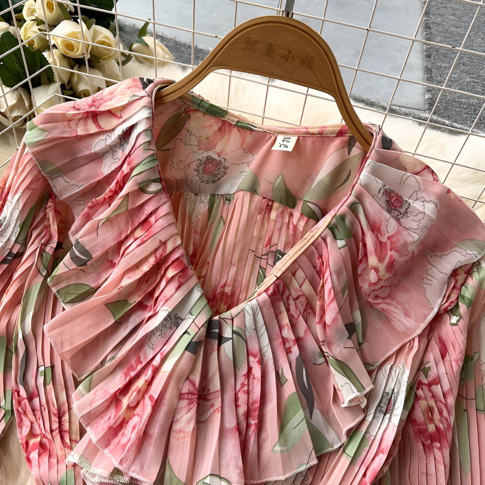 أناقة بلا عناء، مع راحة لا مثيل لها! هذا الطقم المكون من بلوزة بنمط الكشكش وتنورة طويلة بخصر مطاطي يضفي لمسة من الرقي والأنوثة على إطلالتك. بنقشة زهور ساحرة وتصميم مطوي مميز، هذا الطقم مثالي للمناسبات المختلفة، سواء كنتِ تتألقين في لقاء نهاري أو ساهرة مسائية مميزة!