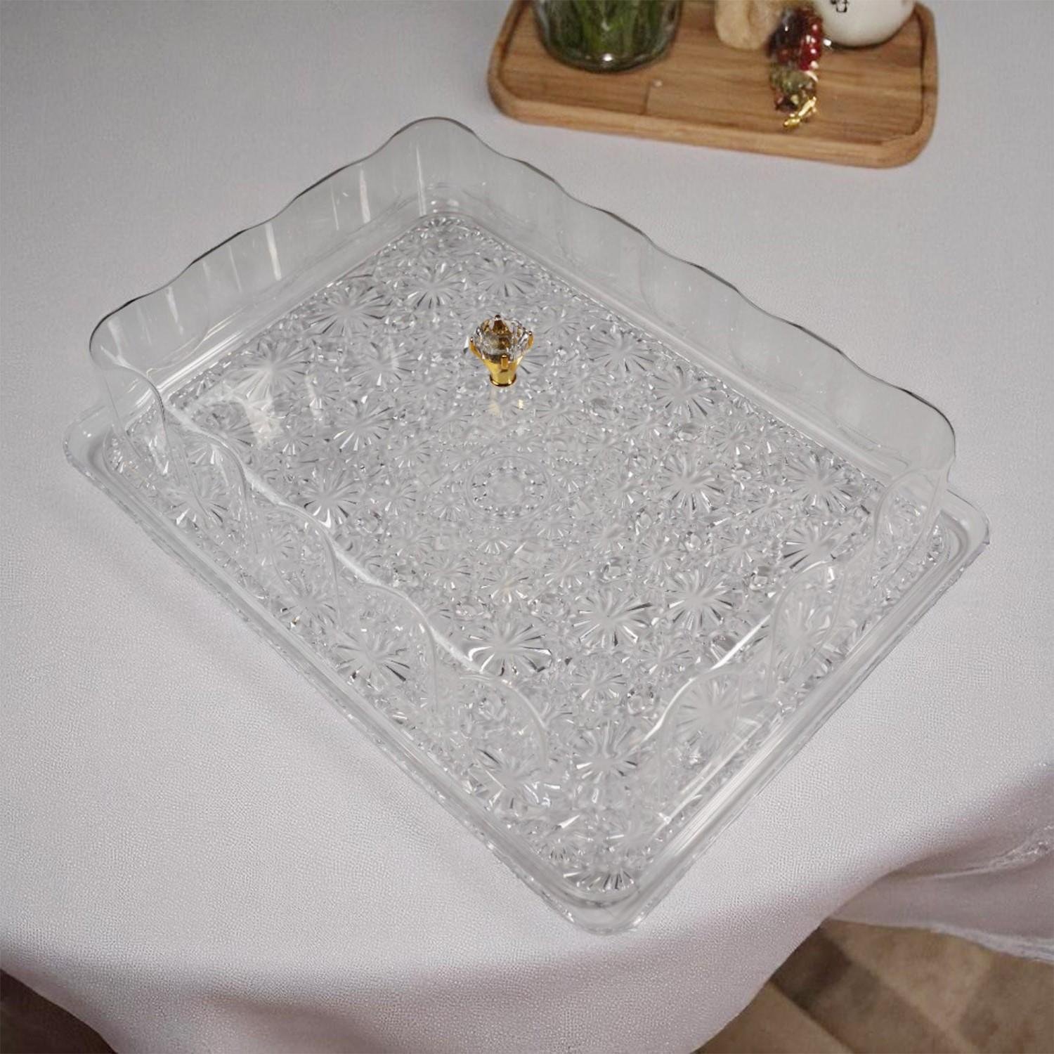 البساطة في التصميم، الأناقة في التقديم اكتشف الطبق الذي يرفع من مستوى ضيافتك مع طبق التقديم المستطيل المصنوع من الأكريليك الشفاف