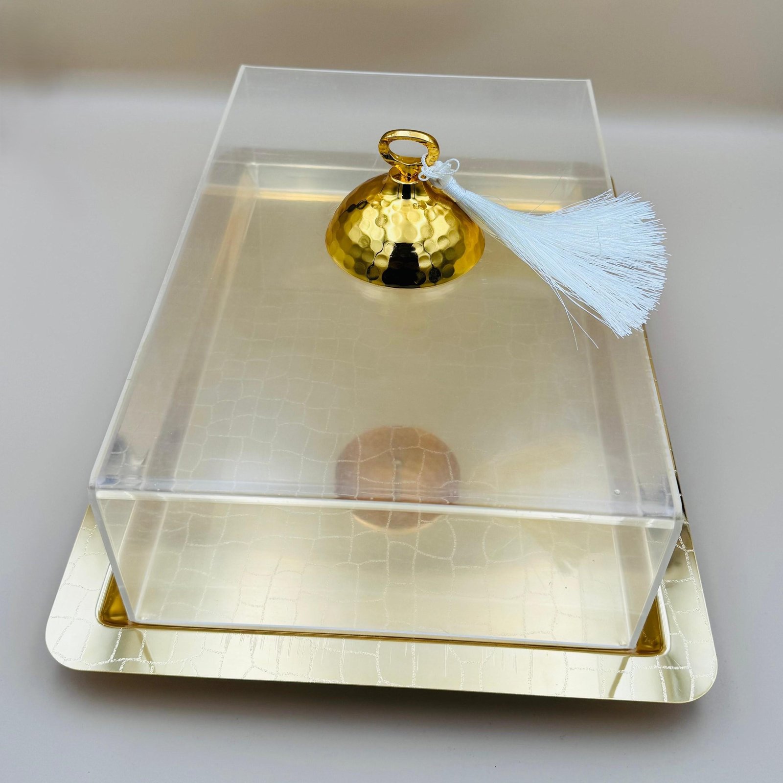 ارتقي بمظهر الحلويات مع صحن الحلويات المستطيل من الأكريليك الذهبي. مصنوع من أكريليك متين وخفيف الوزن مع لمسة نهائية ذهبية أنيقة، يجمع هذا الصحن بين الأناقة والعصرية بسهولة. سواء كنت تخطط لمناسبة خاصة أو استخدام يومي، هذا الصحن هو الخيار المثالي لتقديم الكعك، المعجنات، أو المأكولات المالحة بأسلوب راق