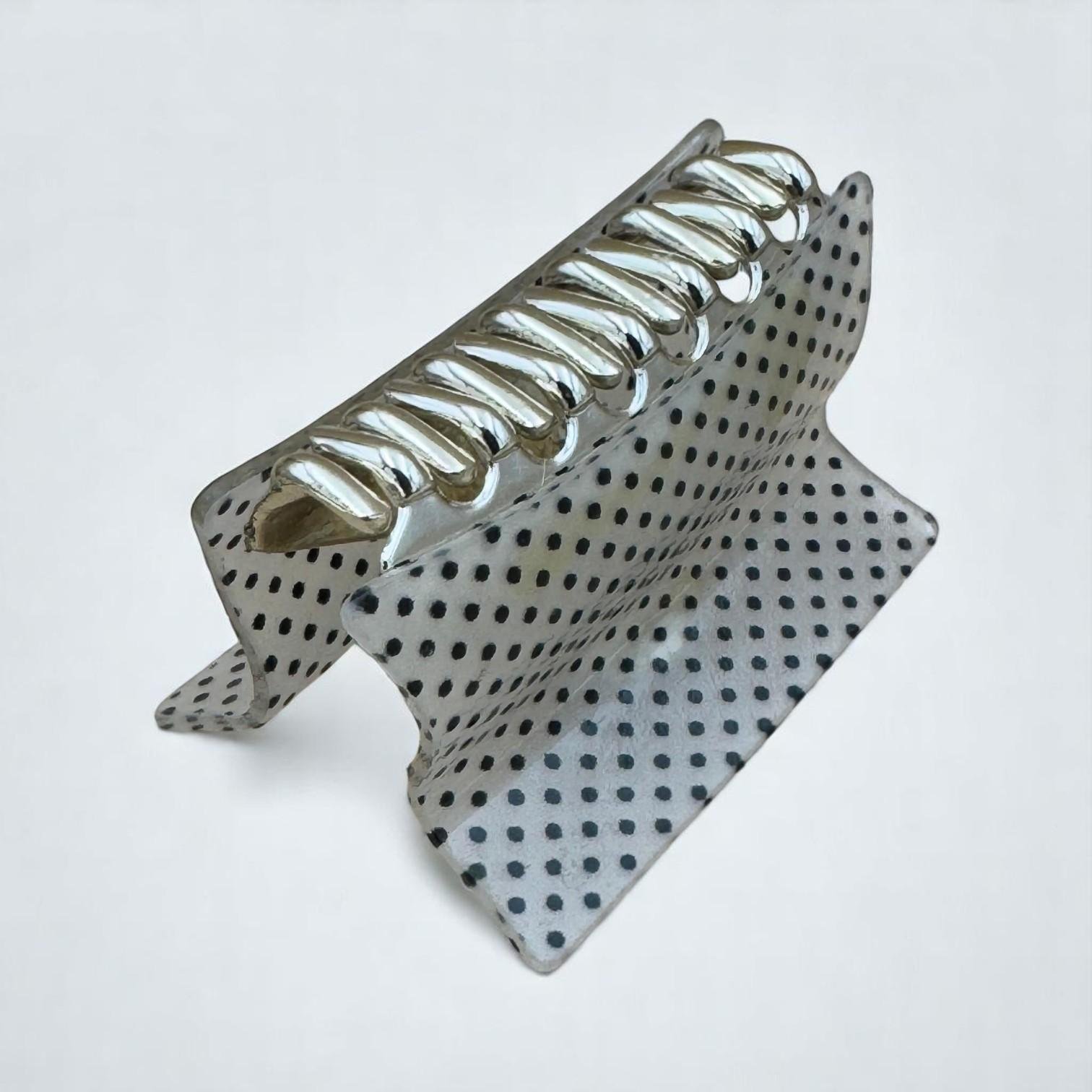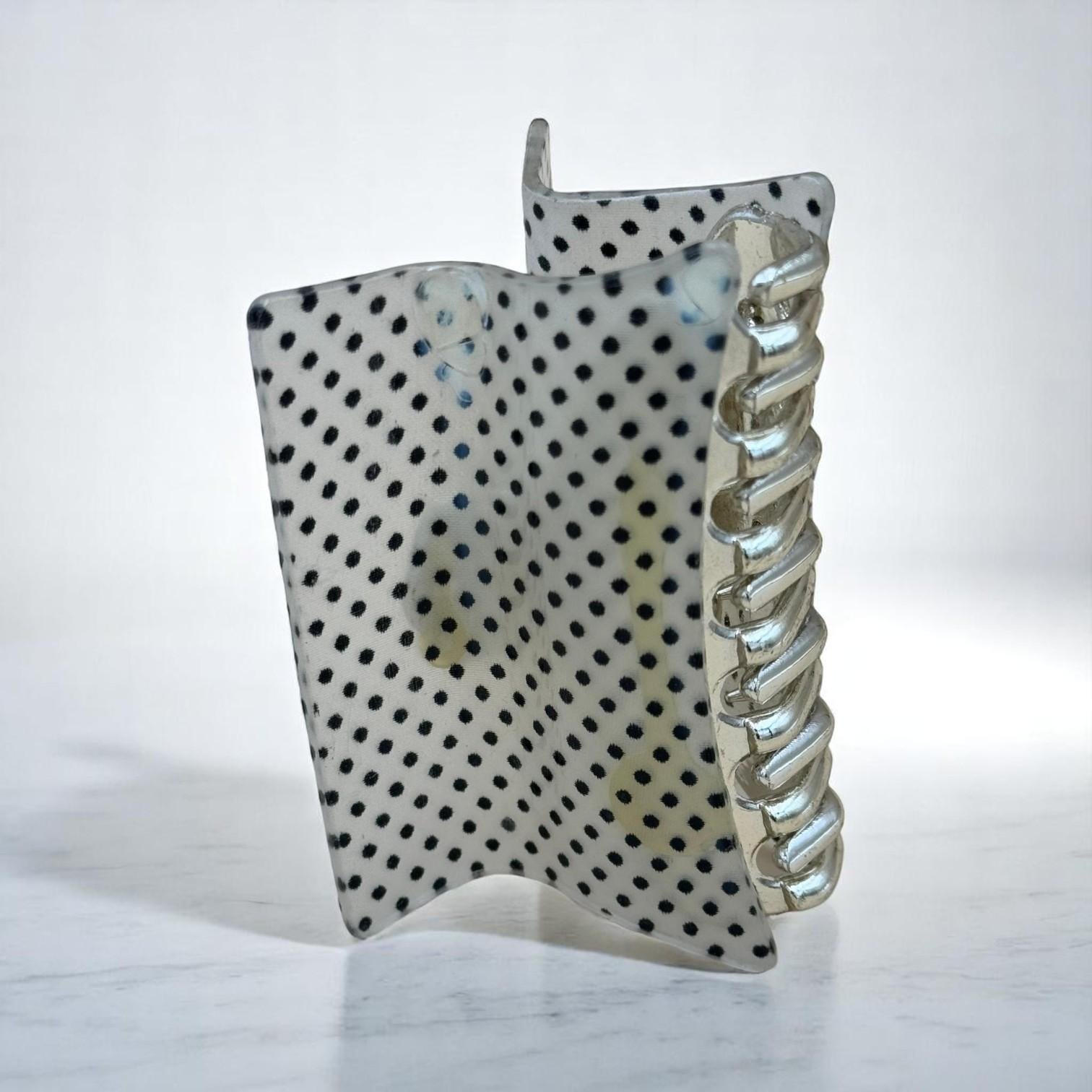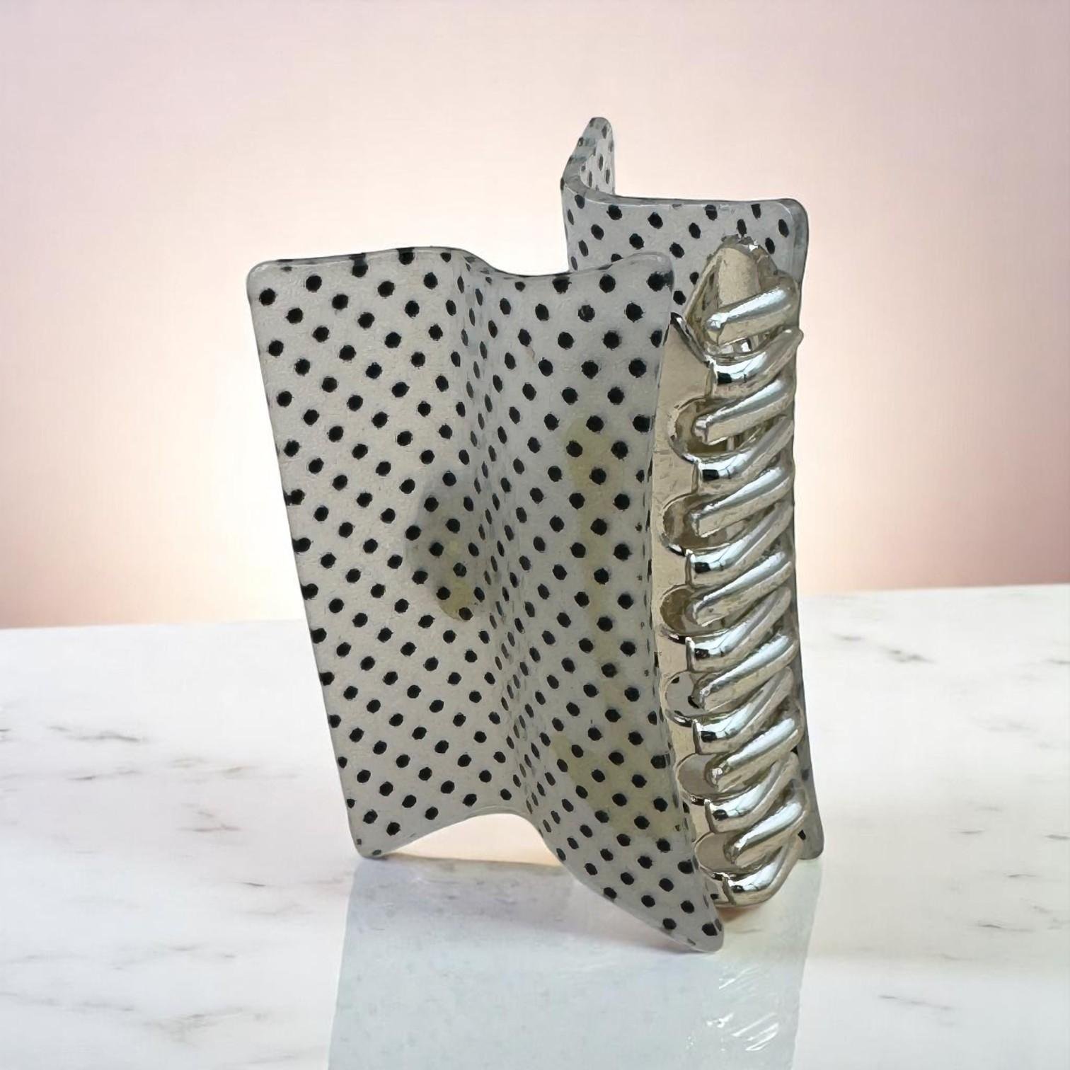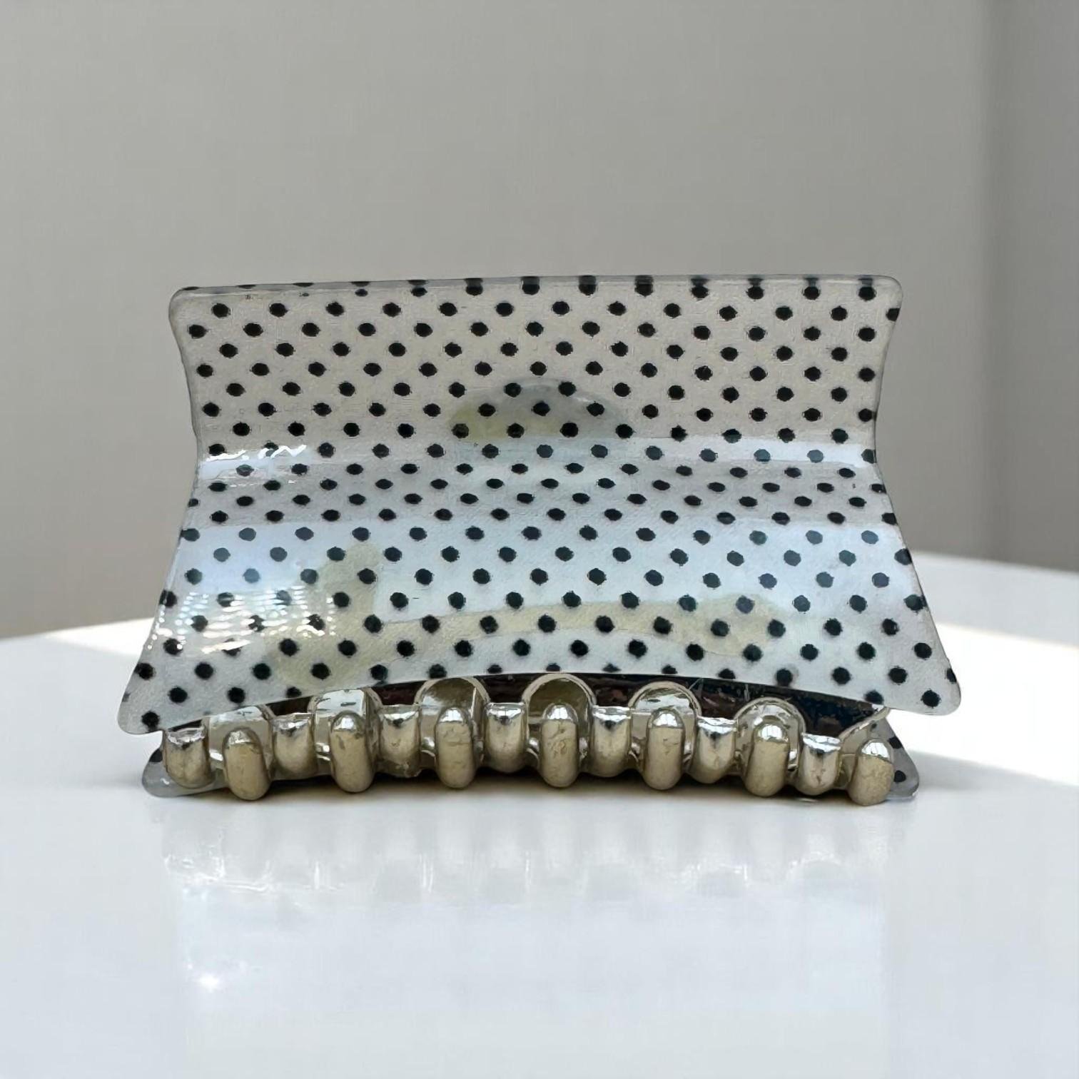ارتقي بأسلوبك اليومي مع هذا المشبك الأنيق المزيج المثالي بين الجمال والثبات مع مشبك شعر بتصميم منقط لامع مع قبضة ذهبية وثبات واسع