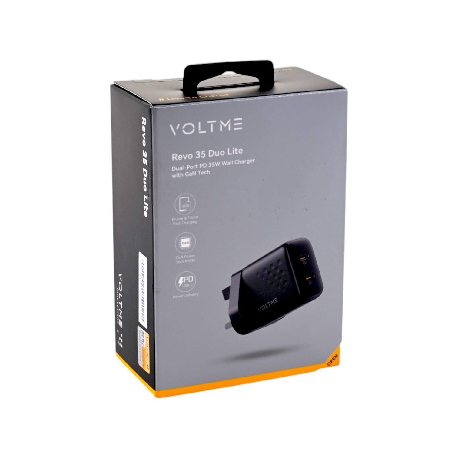 قم بتشغيل أجهزتك باستخدام شاحن الحائط VoltME Revo 35 Duo Light باللون الأسود. يوفر الشحن السريع بقوة 35 واط ووظائف المنفذ المزدوج ، وهو حل الشحن المثالي للمنزل أو المكتب أو السفر.