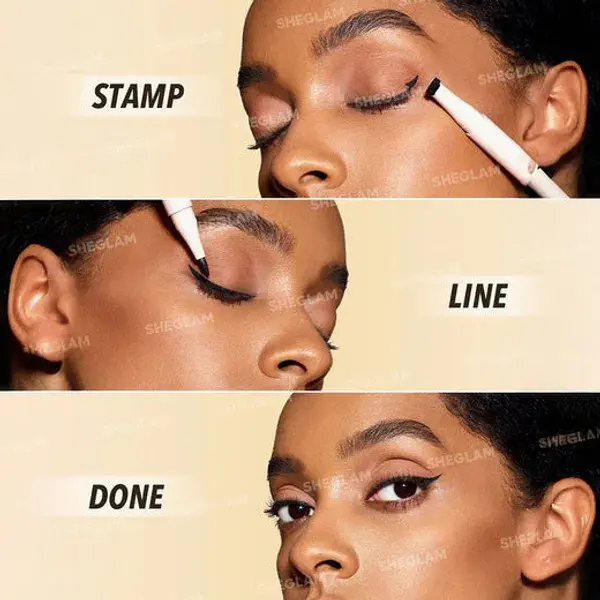 احصلي على إطلالة عيون فوكس المثالية بسهولة مع شي جلام جيت فوكس آي ستامب & لاينر بن بلون أسود.