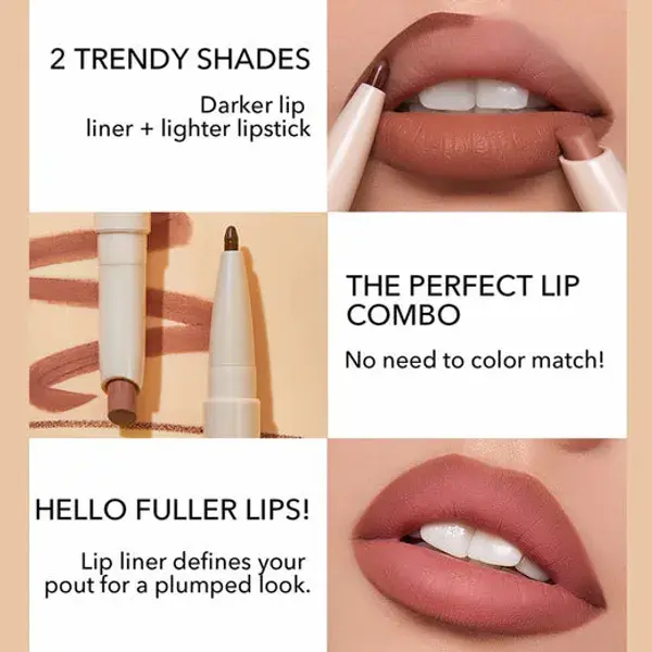 يجمع هذا المنتج بين أحمر شفاه عالي الصبغة وقلم تحديد دقيق، مما يسهل عليكِ رسم وتحديد شفتيكِ بدقة للحصول على مظهر أكثر امتلاءً. بفضل تركيبته الناعمة والمريحة والطويلة الأمد، ستحصلين على لون غني بلمسة ماتية مخملية دون أن يجفف شفتيكِ. سواء كنتِ تبحثين عن إطلالة نهارية أنيقة أو لمسة مسائية جريئة، فهذا الثنائي هو خياركِ المثالي.