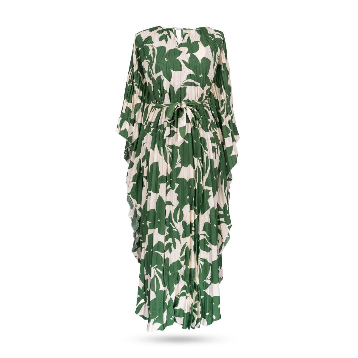 دللي نفسك بإطلالة أنيقة ومريحة مع فستان القفطان البليسيه بطباعة السرخس الاستوائي، الذي يجمع بين الفخامة والبساطة. يتميز بتصميم واسع ومريح مع حزام أنيق يعزز الشكل الجذاب. طباعة السرخس الاستوائية تضيف لمسة طبيعية منعشة، مما يجعله خيارًا رائعًا لمحبات الأزياء الانيقة والعصرية