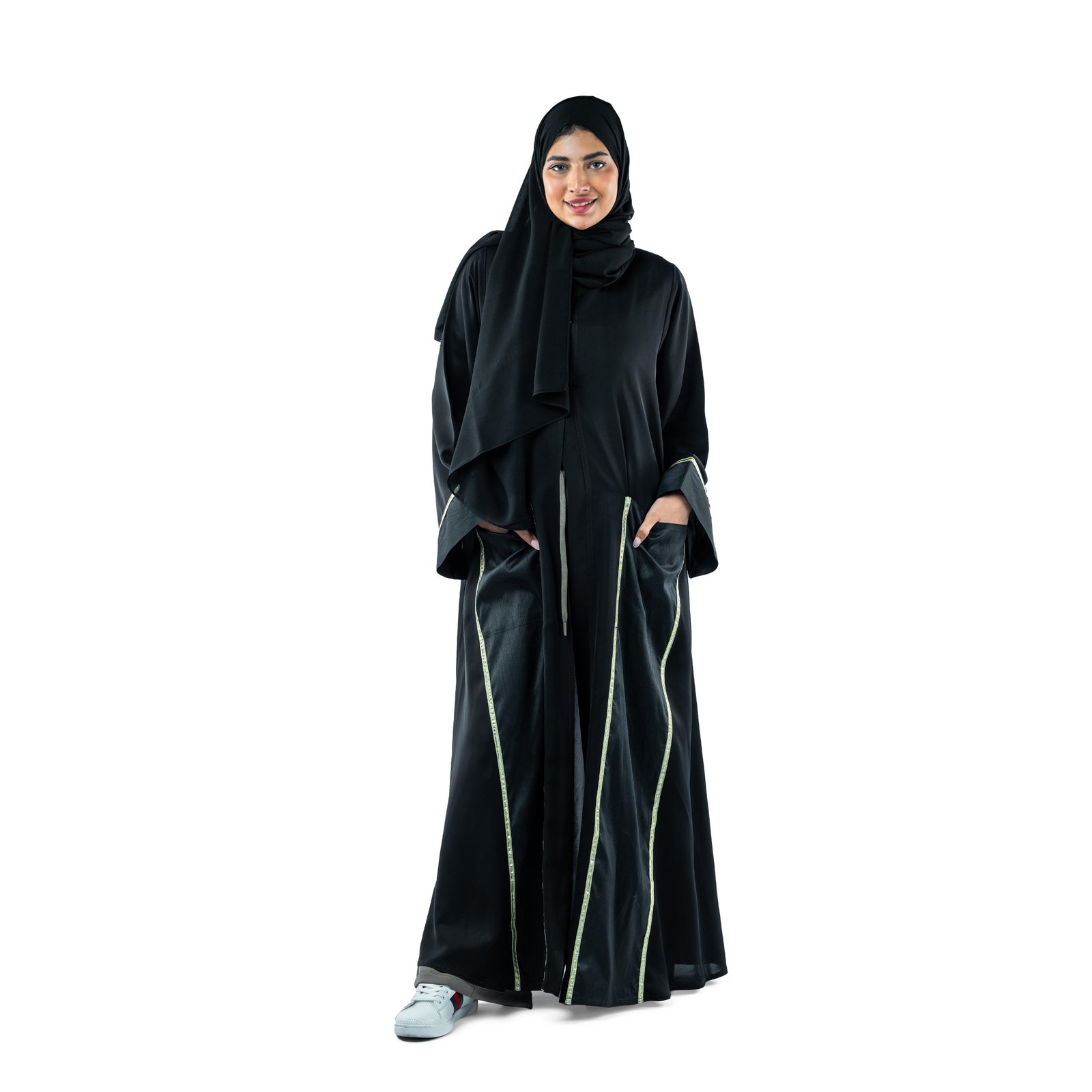 تميزي بإطلالة أنيقة مع هذه العباية المزينة بتفاصيل مخملية ولمسات معدنية، التي تجمع بين الأناقة والراحة. التصميم العالي الجودة مع الزخارف المعدنية يضفي لمسة فاخرة، بينما القصة الواسعة تضمن لكِ مظهراً ساحراً بكل سهولة. تأتي العباية مع حجاب متطابق، مما يجعلها خياراً مثالياً للمناسبات، السهرات، أو حتى لإطلالة يومية مميزة.