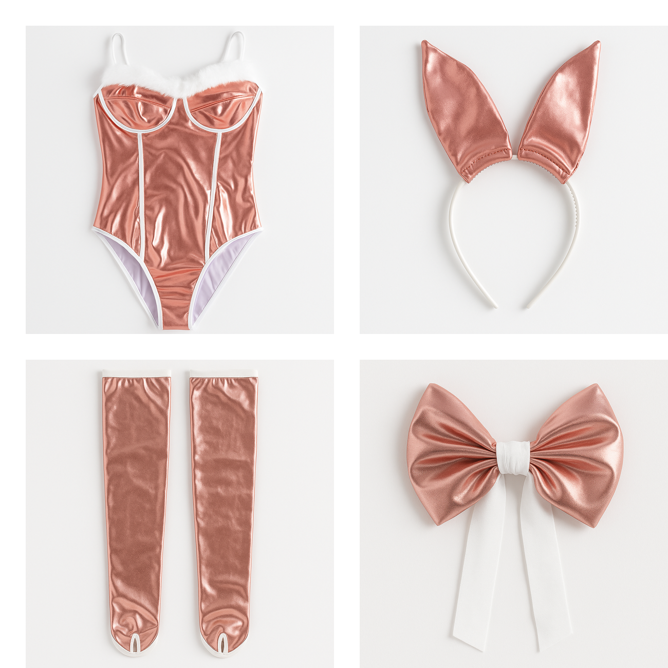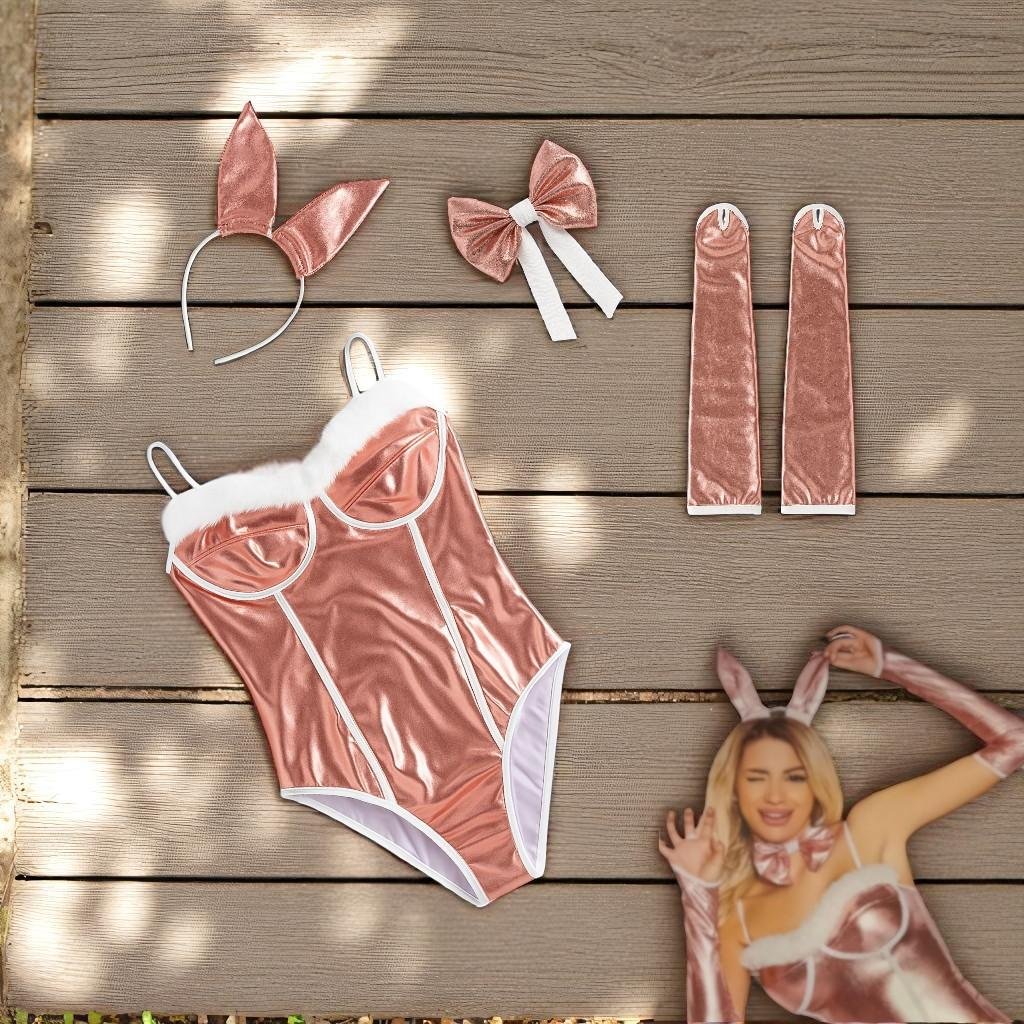 كوني نجمة السهرة مع طقم زي الأرنب المعدني الفاخر! تصميم أنثوي لامع بلمسات من الفرو الصناعي الناعم وإكسسوارات كاملة تضمن لكِ مظهرًا جذابًا ومميزًا في أي مناسبة. مثالي للحفلات التنكرية، السهرات الخاصة، أو جلسات التصوير – هذا الطقم يمنحكِ أناقة مرحة بلمسة فخمة.